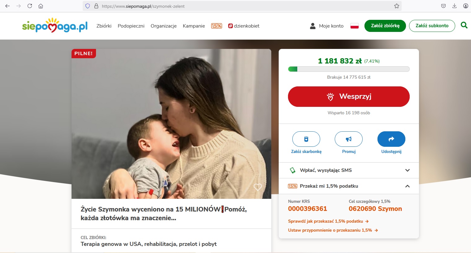 Link do zbiórki środków na leczenie Szymona dostępny jest TUTAJ.