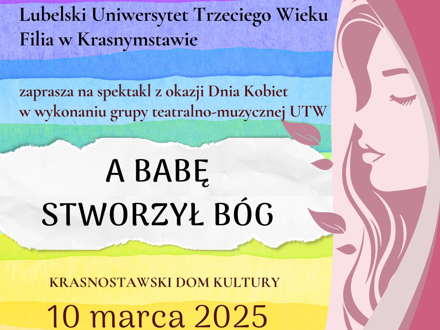 Spektakl "A babę stworzył Bóg" to opowieść, która łączy w sobie elementy teatru i muzyki. Widzowie mogą spodziewać się zarówno wzruszających, jak i zabawnych momentów, a także różnych aranżacji muzycznych. To przedsięwzięcie jest dowodem na to, że pasja i chęć tworzenia nie mają wieku. Słuchacze Lubelskiego Uniwersytetu Trzeciego Wieku udowadniają, że życie po przejściu na emeryturę może być pełne aktywności i artystycznych wyzwań.