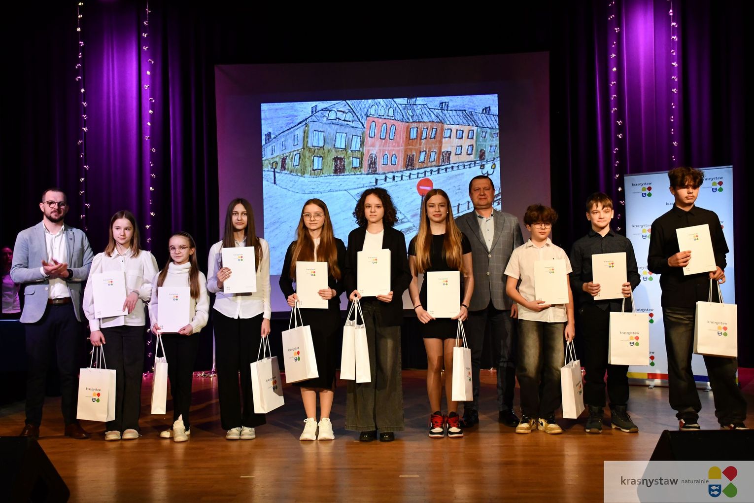 Burmistrz Krasnegostawu Daniel Miciuła, dyrektor KDK Damian Kozyrski i dyrektor MBP dr Artur Borzęcki wręczyli nagrody, których fundatorami byli Urząd Miasta Krasnystaw i Krasnostawski Dom Kultury.