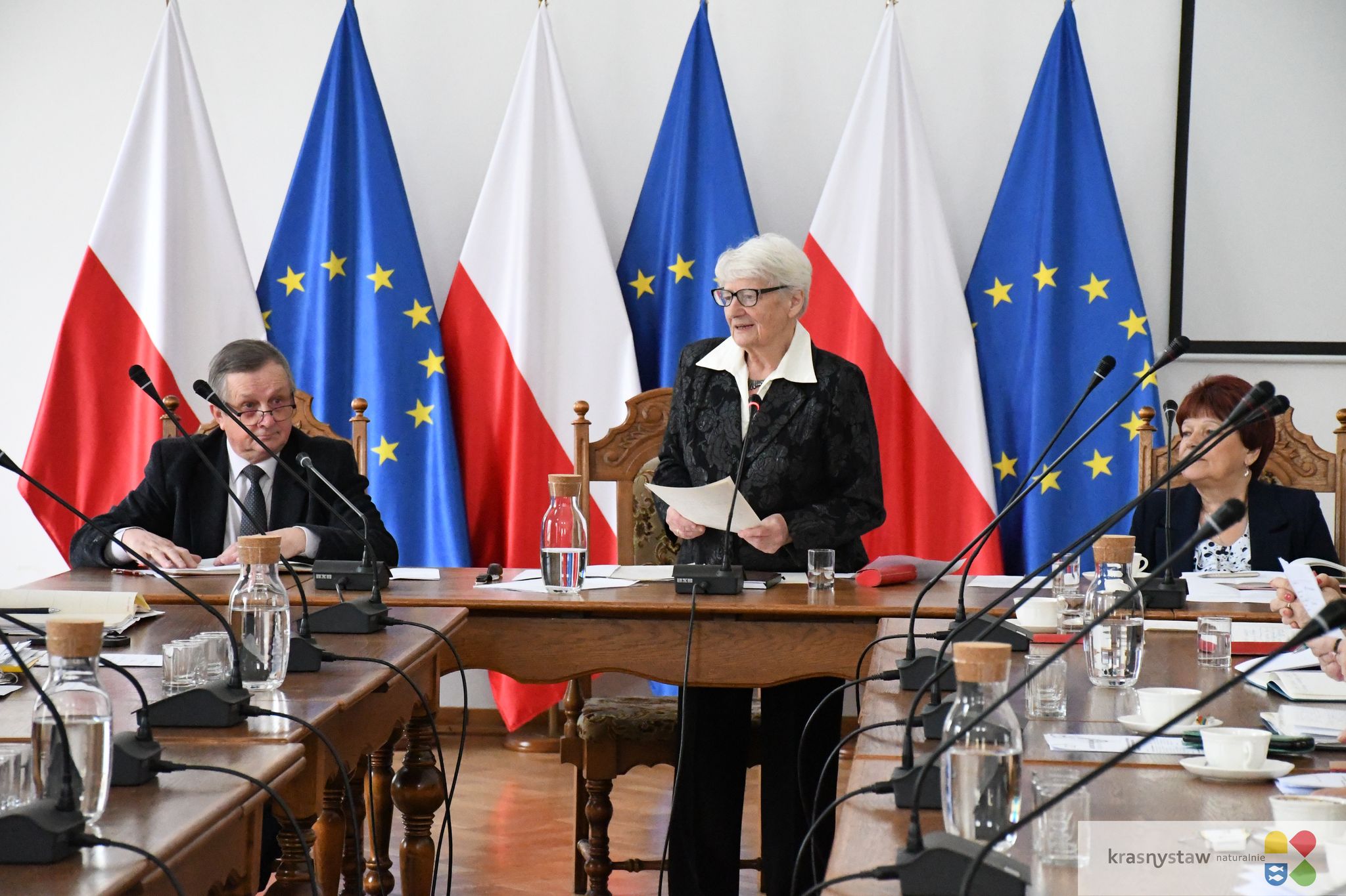 Radni zgłosili szereg interpelacji. Zofia Gregorowicz-Myka przekazała wnioski mieszkańców dotyczące uruchomienia toalety publicznej w rejonie pasażu handlowego, zamykania wiat śmietnikowych na terenie Krasnostawskiej Spółdzielni Mieszkaniowej oraz poprawy estetyki i aktualizacji informacji na słupach ogłoszeniowych. Urszula Hus przedstawiła apel kierowcy o przeprowadzenie akcji informacyjnej na temat bezpieczeństwa pieszych, szczególnie przy przejściach oraz zapytała o możliwość budowy kaplicy na cmentarzu komunalnym. Anna Ciechańska-Marucha poruszyła kwestie poprawy bezpieczeństwa pieszych na ul. Jabłonkowej, budowy dodatkowego pasa ruchu na rondzie Lwowskim, organizacji wydarzeń w dworku starościńskim oraz uruchomienia punktu informacji turystycznej latem. Kazimierz Domański zapytał o utylizację azbestu, a Wiesława Jóźwiak o dostępność schronów. Jolanta Garbal i Jerzy Bugała zwrócili uwagę na potrzebę prac porządkowych przy ulicach Okrzei, PCK i Podwale. Na wszystkie interpelacje wstępnych odpowiedzi udzieliła zastępca burmistrza Monika Sawa.