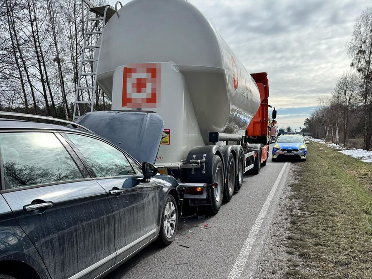 Z relacji funkcjonariuszy wynika, że kierowca ciężarówki nie zachował należytej kultury i ostrożności na drodze. Najpierw "popędzał" kierującą citroenem, używając sygnału dźwiękowego, a następnie bez upewnienia się, czy ma wystarczającą przestrzeń, podjął się wyprzedzania. W trakcie manewru dostrzegł nadjeżdżający z naprzeciwka pojazd, co zmusiło go do gwałtownego powrotu na swój pas. W wyniku tego nagłego ruchu kierująca citroenem uderzyła w tył naczepy ciężarówki.