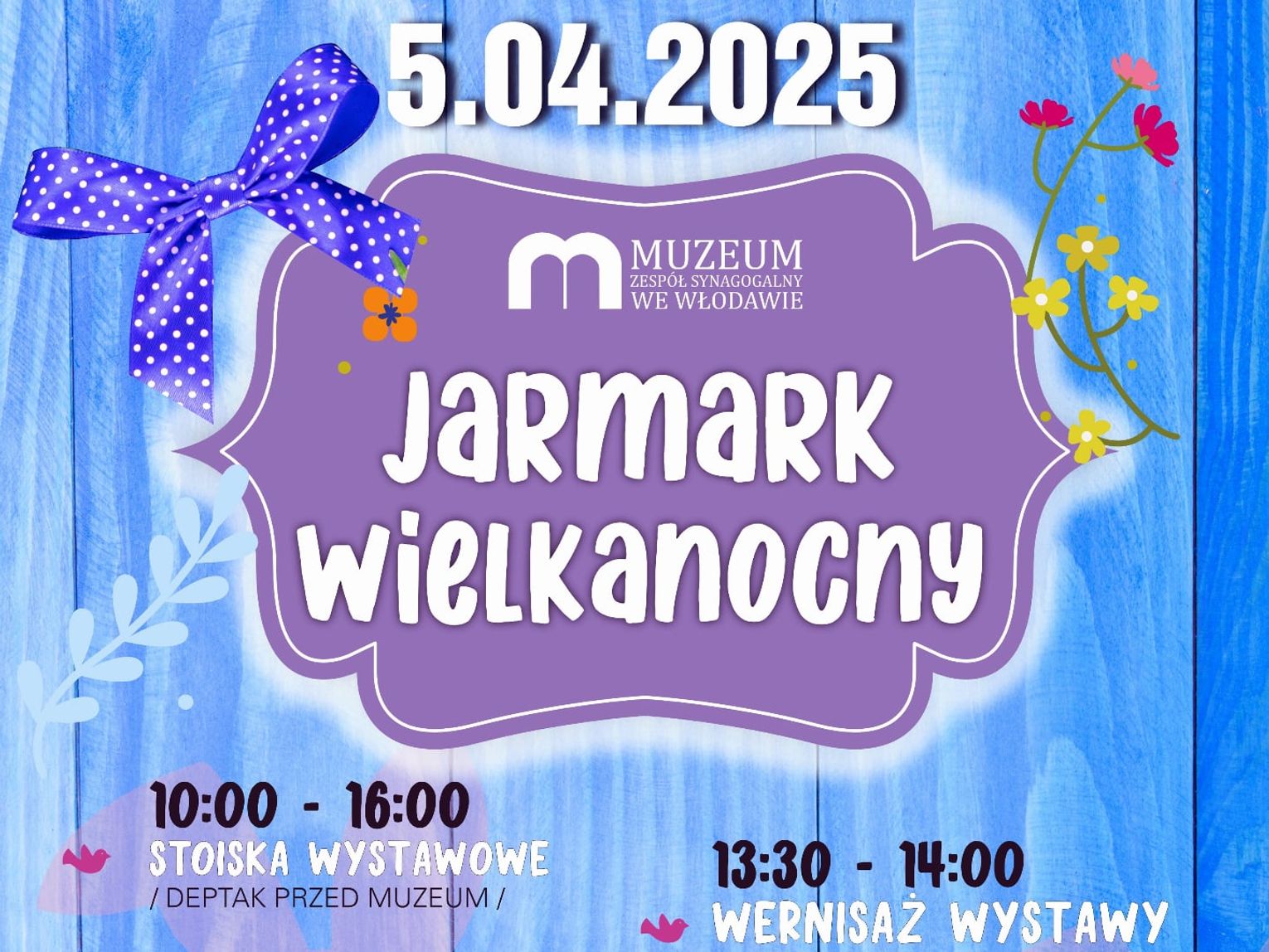 O godzinie 13:30 w Małej Synagodze (I piętro) odbędzie się wernisaż wystawy „Palma bije nie zabije”, która przybliży tradycje i symbolikę palm wielkanocnych.