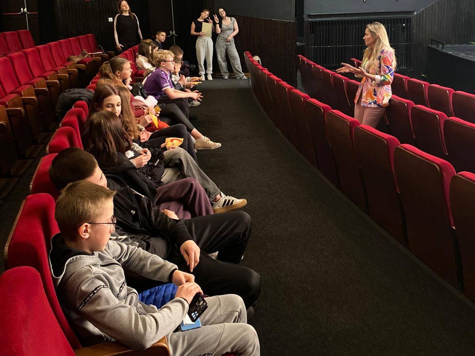W ramach rozpoczętych obchodów, 24 marca uczniowie mieli okazję odwiedzić Chełmski Dom Kultury. Dzięki uprzejmości Barbary Szarwiło, aktorki Teatru Ziemi Chełmskiej, siódmoklasiści poznali kulisy pracy aktora oraz ciekawostki związane z teatrem. Wizyta ta była szczególnie cenna, biorąc pod uwagę niedawny jubileusz 120-lecia istnienia Teatru Ziemi Chełmskiej.