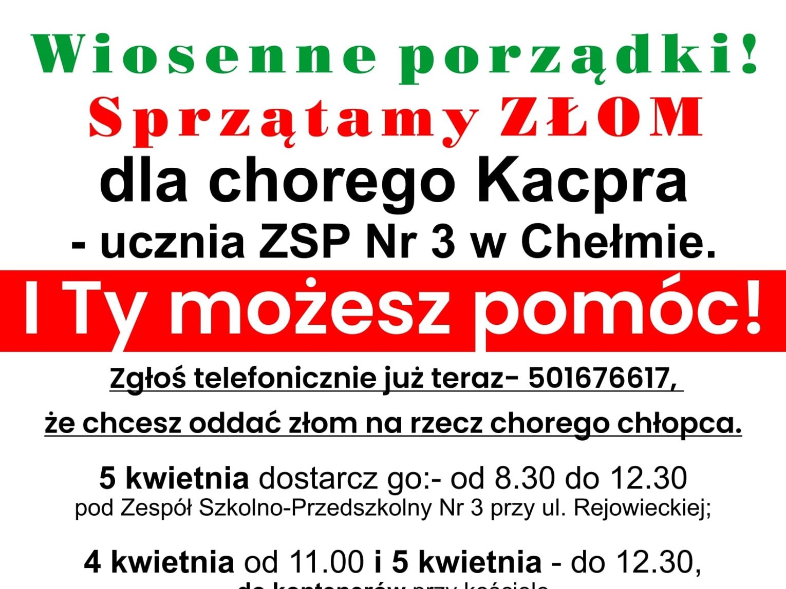 To inicjatywa, która uczy empatii i solidarności, a jednocześnie pozwala na ekologiczne pozbycie się zbędnych przedmiotów. Organizatorzy akcji apelują do mieszkańców Chełma o aktywne włączenie się w zbiórkę, każdy kilogram złomu ma znaczenie.