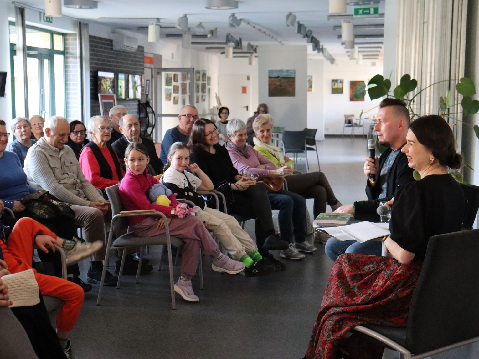 Spotkanie rozpoczęło się od wyjaśnienia tajemniczej litery "L" w nazwisku autora. Jak zdradził pan Mateusz, to inicjał imienia Leszek, odziedziczonego po ojcu. Kozłowski opowiedział o swojej ścieżce zawodowej i społecznej misji, którą realizuje poprzez swoją fundację. Jej celem jest tworzenie bezpiecznej przestrzeni dla dzieci, młodzieży i rodzin poprzez organizację warsztatów, prelekcji oraz oferowanie bezpłatnej pomocy psychologicznej.