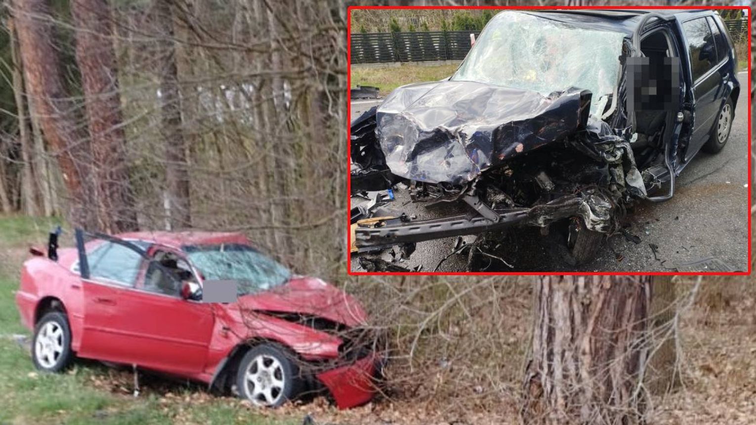 Jak wstępnie ustalili policjanci, 27-letni kierujący vw golfem zjechał na przeciwległy pas ruchu i zderzył się czołowo z pojazdem marki Rover, którym kierował 61-latek podróżujący wraz z pasażerem.