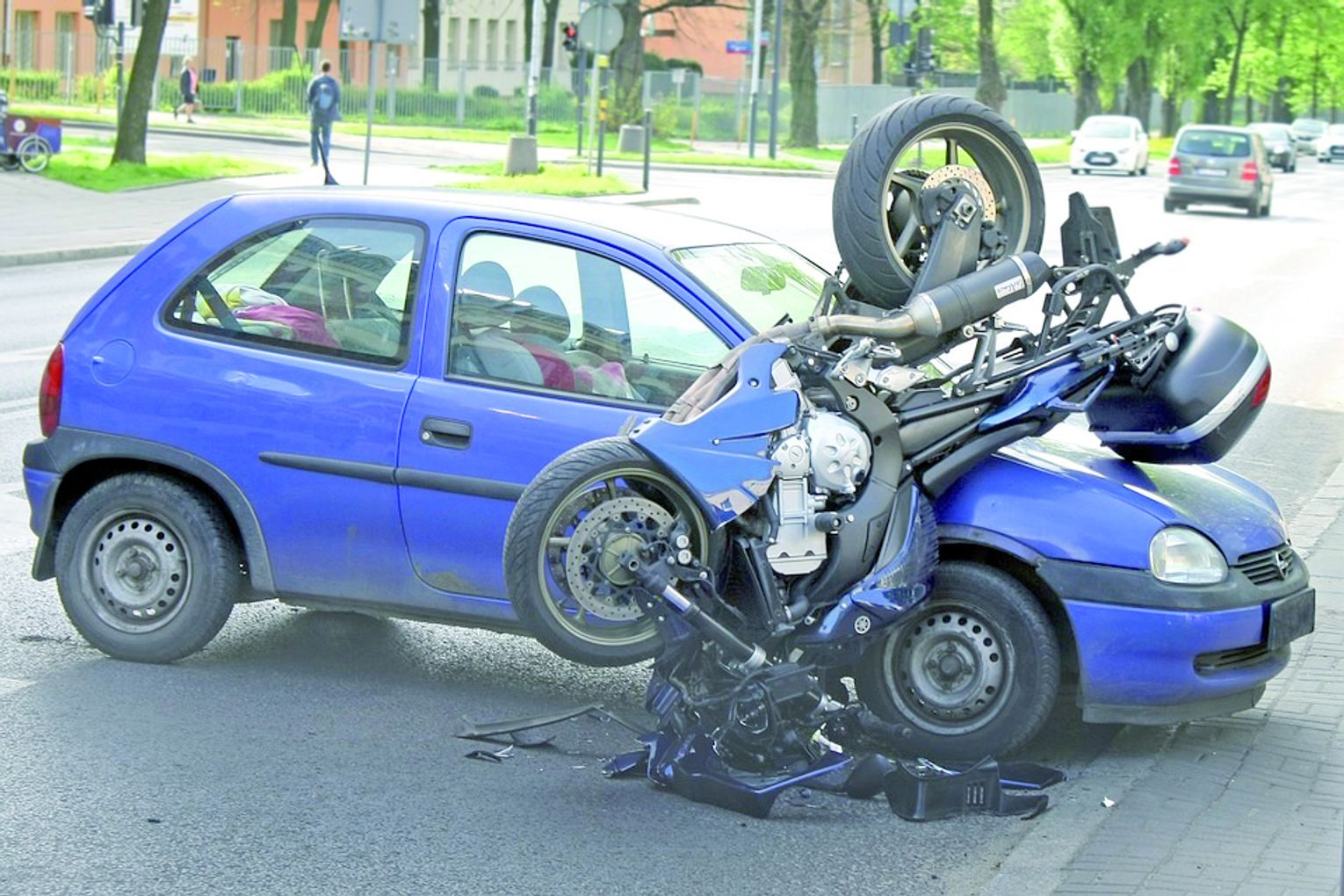 Równie niebezpiecznie może być podczas jazdy przez rondo, gdzie możemy natknąć się na kierowcę, który "chce" mieć uszkodzony lewy bok auta. Będzie jechał prawym pasem, czekając na osobę chcącą także na niego wjechać, a nie zachowa ostrożności. Podobnie na skrzyżowaniu z dwoma pasami ruchu w tym samym kierunku, za którym mamy już tylko jeden. Jeżeli jedziemy lewym, to po zjechaniu musimy przepuścić wszystkich jadących po naszej prawej. Nieuczciwi kierowcy często w takich sytuacjach przyspieszają, a kiedy dochodzi do stłuczki, wina jest po naszej stronie. Chłodny umysł trzeba zachować szczególnie w miejscach, gdzie na drodze jest wiele łamanych linii, ponieważ przypadkiem możemy wjechać na sąsiedni pas ruchu. W większych miastach często napotkamy je na skrzyżowaniach, kolejnych ulubionych miejscach sprawców celowych kolizji. Jeśli poruszamy się tamtędy pierwszy raz, ich uwagę może zwrócić nasza obca w mieście rejestracja, więc miejmy oczy z tyłu głowy.