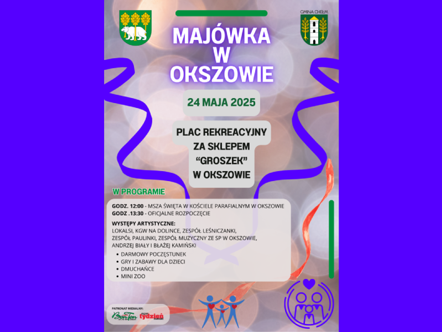 Majówka rozpocznie się o godzinie 12:00 mszą świętą w kościele parafialnym w Okszowie. Po nabożeństwie, około godziny 13:30, nastąpi oficjalne rozpoczęcie części rozrywkowej na placu rekreacyjnym.