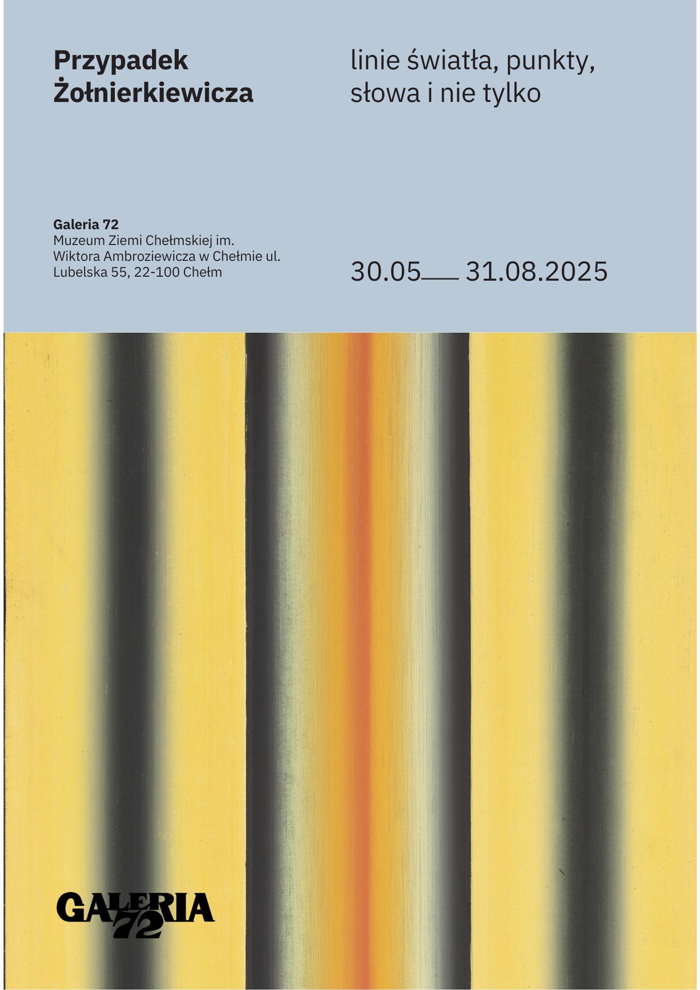 – Szanowni Państwo, najważniejsza w tym wszystkim będzie sztuka Tomasza Żołnierkiewicza – Artysty poszukującego, asystenta Prof. Stefana Gierowskiego (1925-2022), który mimo nietuzinkowego życiorysu, pozostawił po sobie dzieło różnorodne, poszukujące, zatrzymujące się przy wielu zauroczeniach formą, kolorem, światłem i przestrzenią. Dotykająca wielu problemów, przystająca do różnych stylów, twórczość prof. Żołnierkiewicza w przestrzeni Galerii 72 zabrzmi swojsko, wda się w równoprawny dialog z twórcami, którzy przez ponad 50 lat tworzyli niezwykłą historię tego miejsca – dodaje Barczyńska.