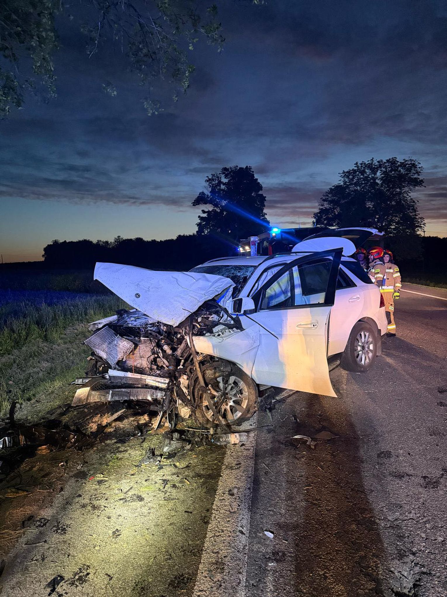 Pojazdem na ukraińskich rejestracjach jechał mężczyzna. Być może zasnął albo zasłabł i stracił panowanie nad autem. Zjechał na pobocze i uderzył w przydrożne drzewo. Z obrażeniami ciała został przewieziony do szpitala.