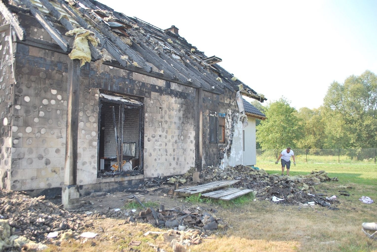 - Wszyscy skupili się na tym, żeby uratować dach domu, który już się palił - opowiada pani Marta. Mimo tych starań całe piętro domu niemal zupełnie się spaliło. Dach trzeba rozebrać. Pomieszczenia na parterze są osmalone i zalane wodą. Budynek w tym stanie nie nadaje się do zamieszkania.