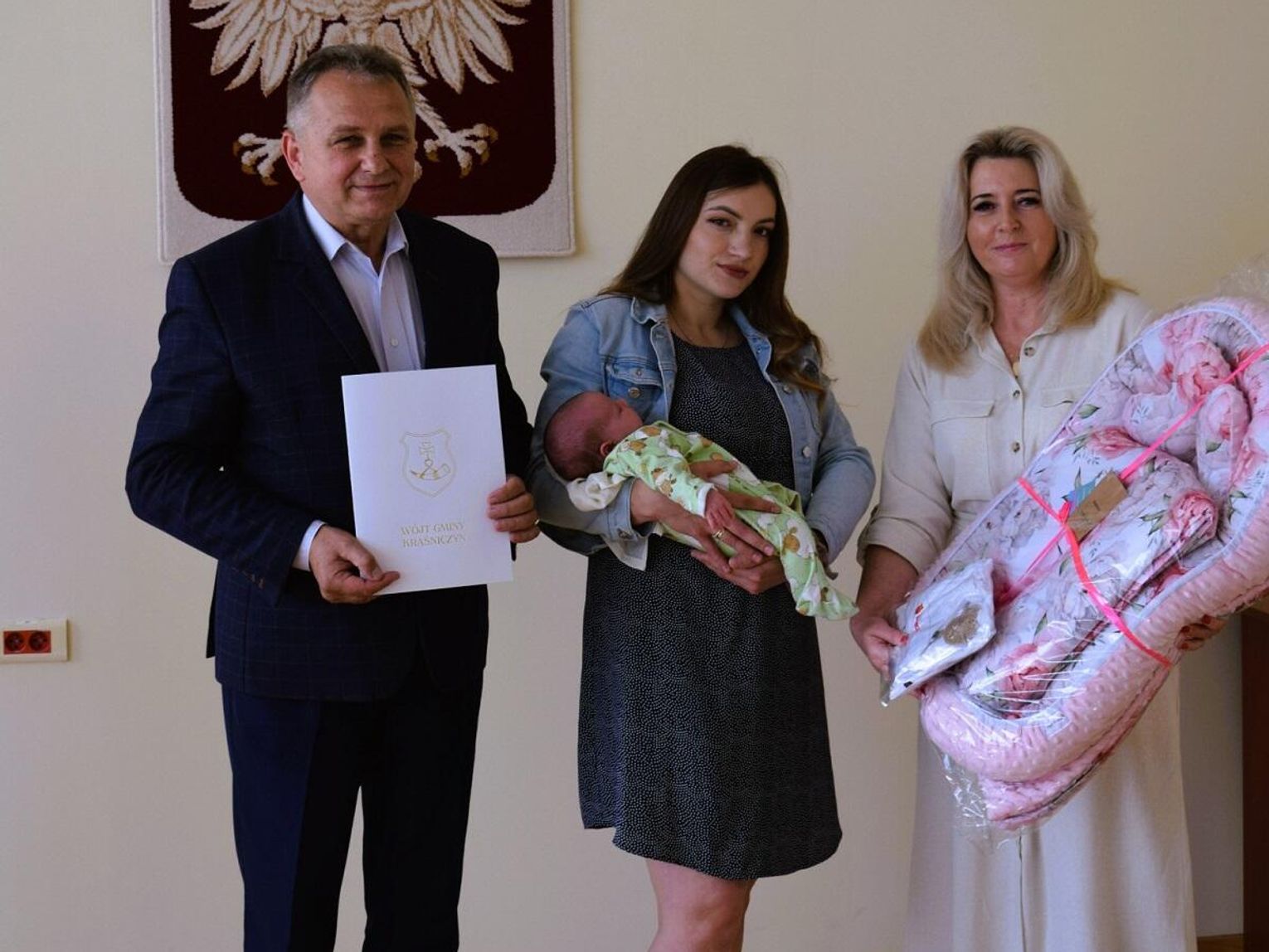 Wyprawkę wręczyli wójt gminy Kraśniczyn Jan Chorągiewicz oraz kierownik Gminnego Ośrodka Pomocy Społecznej Beata Cichosz. Inicjatywa wręczania „Wyprawki dla Malucha” to wyraz troski o najmłodszych mieszkańców gminy i ich rodziny. To również zachęta do budowania silnej, wspierającej się wspólnoty, w której każde dziecko jest mile widziane i traktowane jako cenna część lokalnej społeczności. Wójt gminy złożył serdeczne życzenia zdrowia, radości i pomyślności dla całej rodziny, ze szczególnym ciepłem zwracając się do małej Mai.