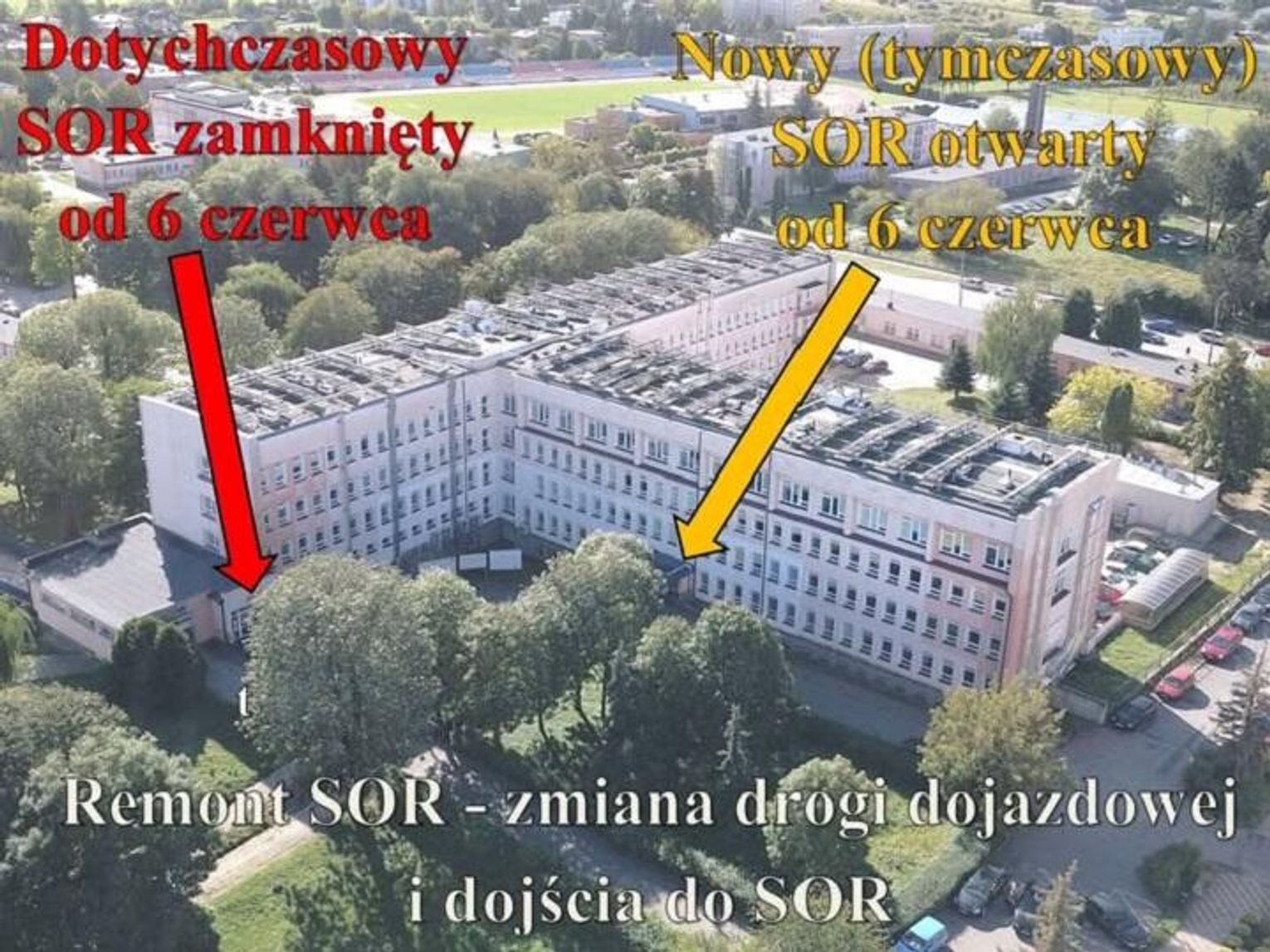 Zmienione zostały zarówno trasy dojazdu dla karetek pogotowia, jak i ścieżki dojścia dla osób korzystających z usług szpitala. Wszystkie ambulanse kierowane są teraz bezpośrednio przed główne wejście do budynku, które na czas remontu pełni rolę wejścia do Szpitalnego Oddziału Ratunkowego. Tym samym wejściem powinni poruszać się również pacjenci zgłaszający się do SOR.