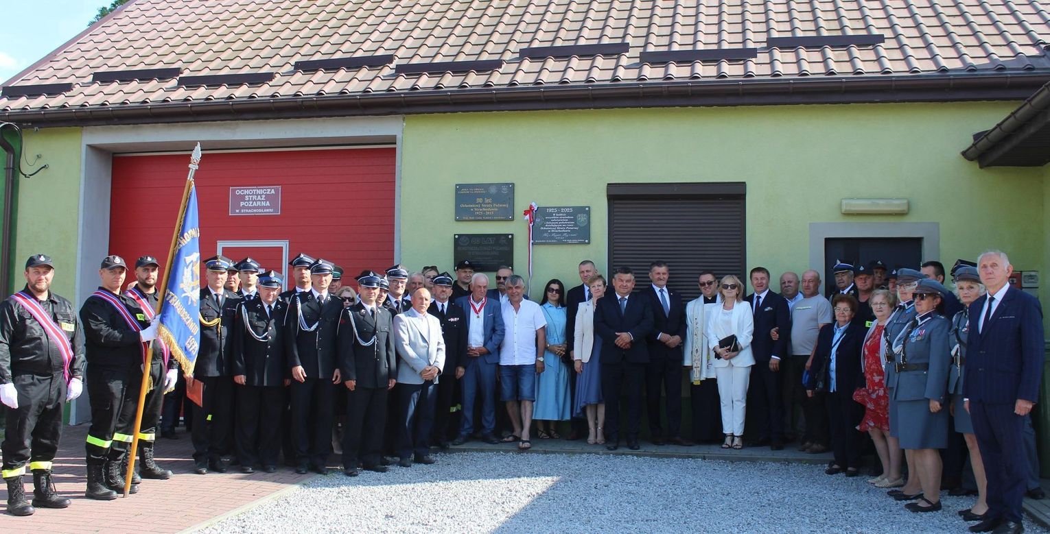 Tego dnia odsłonięto także okolicznościową tablicę, zamontowaną na ścianie budynku remizy. Odsłonili ją: wójt Dariusz Stocki, prezes OSP Strachosław Marcin Hałaj, komendant OSP Strachosław Ireneusz Przychoda i dh Krzysztof Szykuła. Po odsłonięciu tablicę poświęcił ksiądz Radosław Karpiuk.