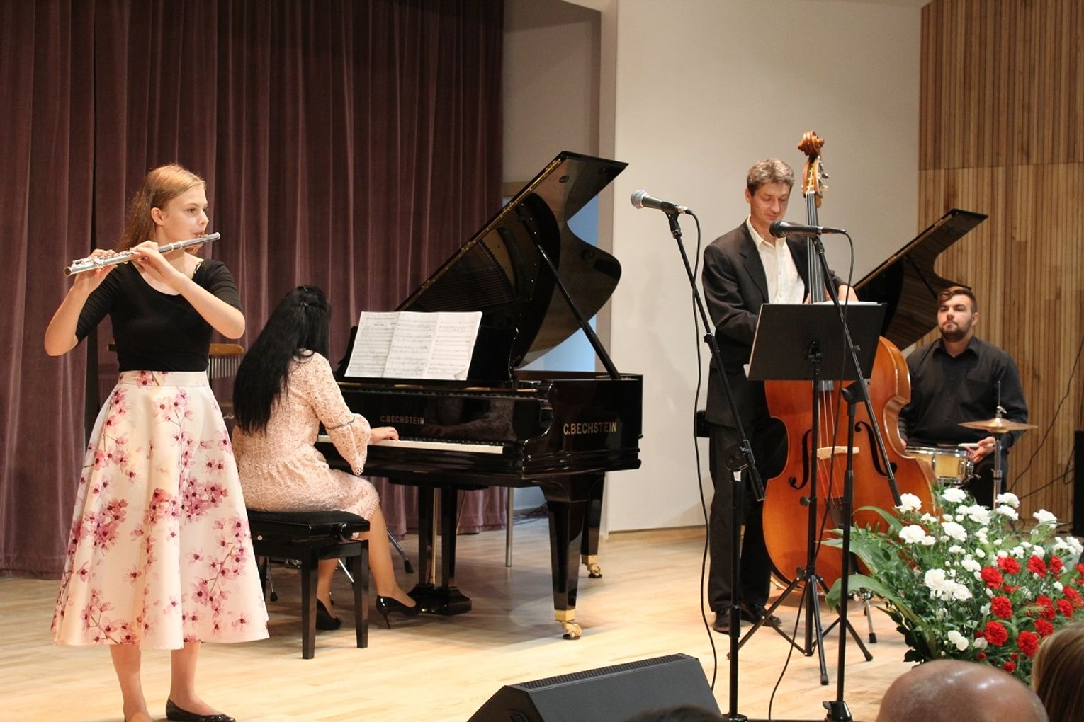 - Bez was tej uroczystości, a może i nawet tej szkoły by nie było, bo ta przyjaźń, te dobre fluidy były i są nam potrzebne - powiedział do zebranych w sali koncertowej dyrektor Wojtaszek. - W 1945 roku tych fluidów nie było, a inauguracja roku szkolnego odbywała się w 3-pokojowym mieszkaniu. Dzisiaj, po 73 latach, wszystko jest inne. My jesteśmy inni, otoczenie jest inne. Mamy około 200 uczniów, szkoła jest rozpoznawalna w mieście, w regionie, w Polsce i wreszcie jesteśmy nie w małym mieszkaniu, ale w pięknej nowej siedzibie... Wierzę, że to przełoży się na jakość pracy uczniów i nauczycieli.