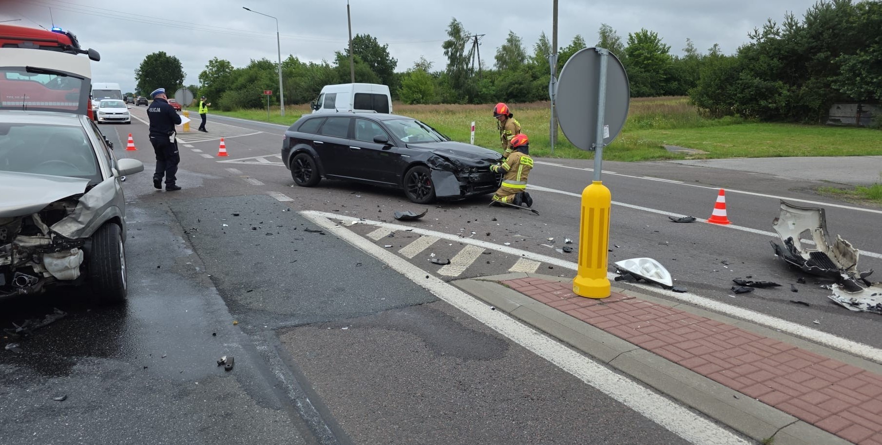 Jak wstępnie ustalili policjanci, 19-letni kierowca opla, wyjeżdżając z ulicy Polewanej na krajową siedemnastkę, nie ustąpił pierwszeństwa przejazdu prawidłowo jadącej alfie romeo. Samochodem tym podróżowała trzyosobowa rodzina: 32-letni mężczyzna, 30-letnia kobieta oraz 4-letnia dziewczynka.