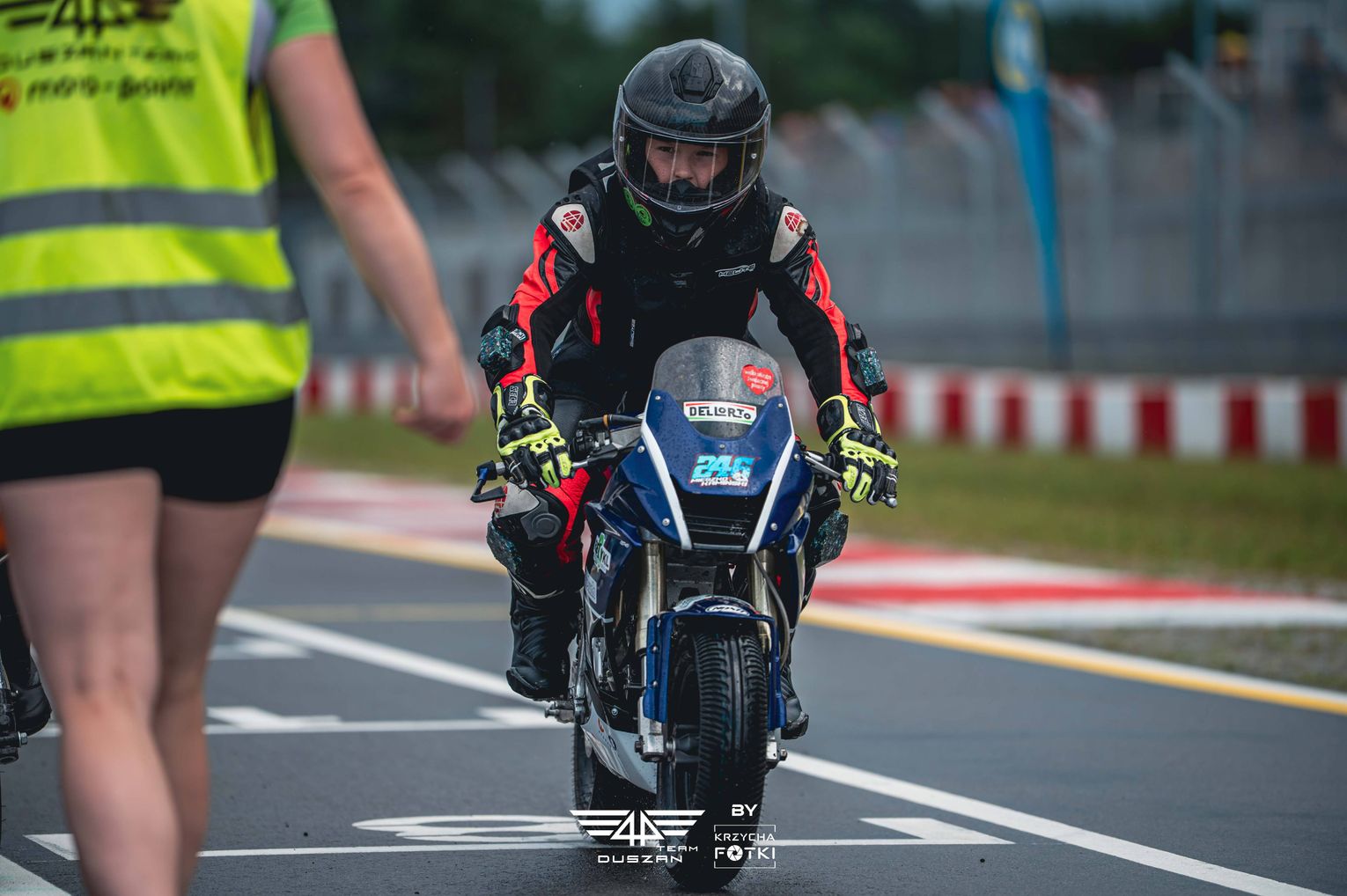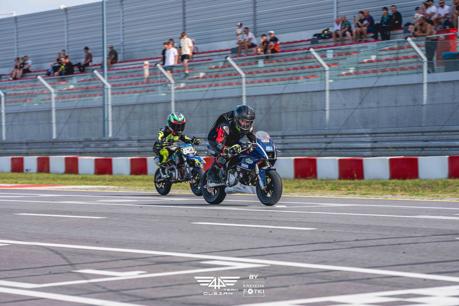 - Jesteśmy bardzo zadowoleni, Mieszko zdobywa cenne doświadczenie, dostali umiejętności na nowym motocyklu, a to przynosi później pozytywne skutki - mówi tata i manager młodego motocyklisty Krzysztof Kamiński. - Dodatkowo, do rywalizacji na torze dołączyłem również ja, chociaż potraktowałem to bardziej jak zabawę, ale mimo wszystko cieszę się, że mogłem spróbować swoich sił. Z okrążenia na okrążenie "wykręcałem" coraz lepsze czasy, co dało mi 15. pozycję startową w 25-osobowej grupie. W wyścigu głównym nie wziąłem jednak udziału, bo przez zmianę pogody niezbędna okazała się wymiana opon w motocyklu Mieszka.