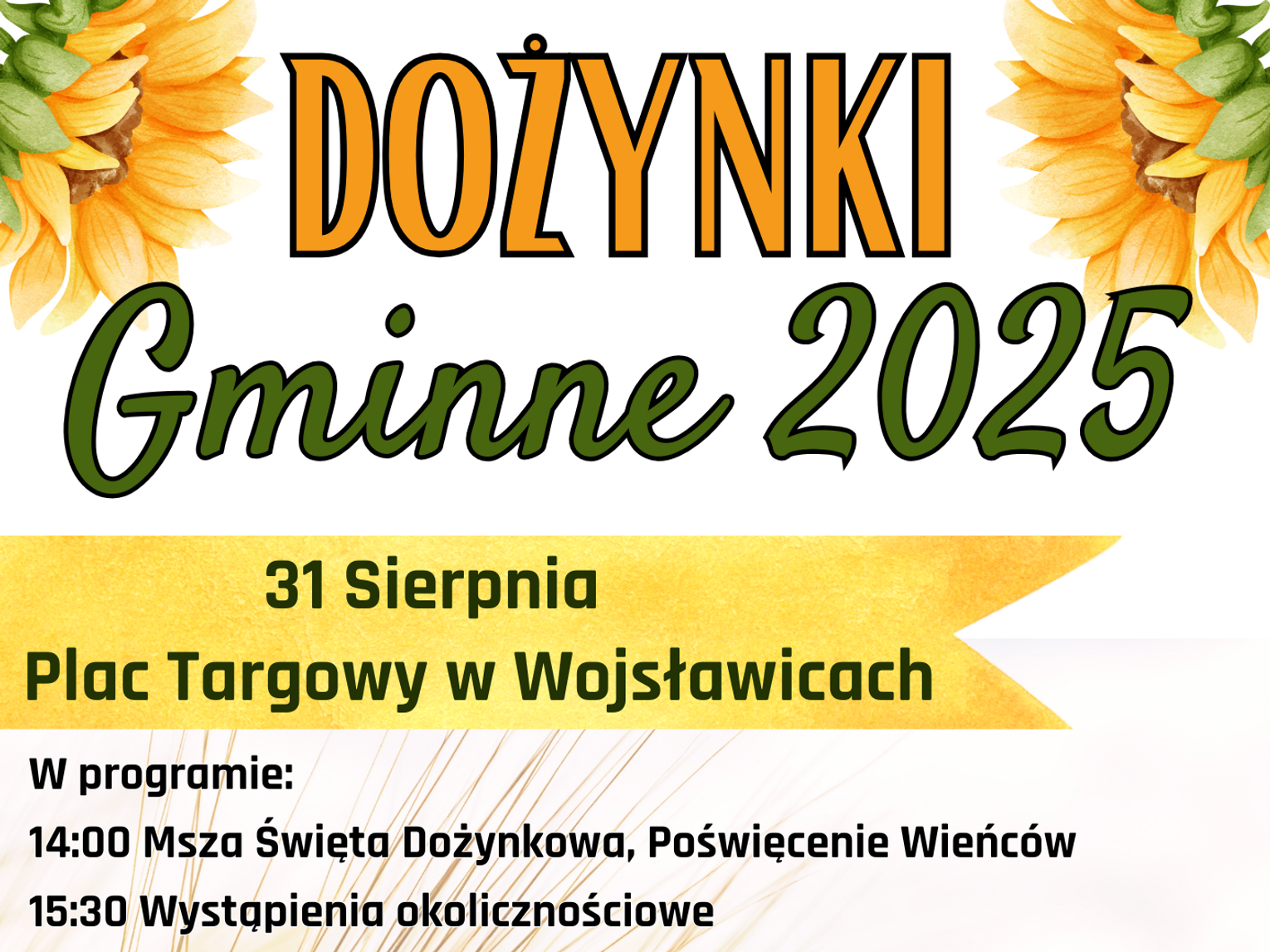– Zapraszamy całe rodziny na wspólne świętowanie plonów. Niech tegoroczne dożynki staną się okazją do wspólnej radości, integracji i podziękowania. Bo dożynki to nie tylko czas zabawy, ale czas wdzięczności – za plony ziemi, za trud pracy rolników i za chleb, który codziennie gości na naszych stołach – mówią organizatorzy.