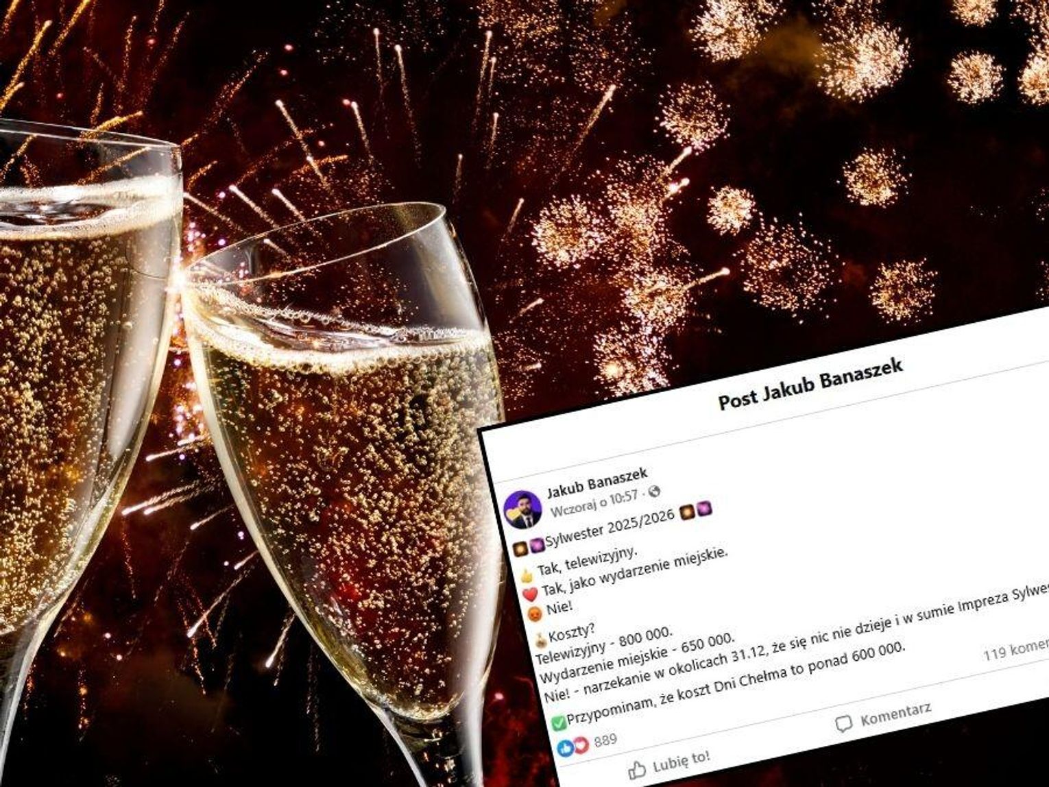 „Hahaha, wy już o Sylwestrze gadacie, a co z tego, że 600 tysięcy złotych z podatników kasy pójdzie? A biednych coraz więcej i nie ma pracy w Chełmie. Ja na miejscu prezydenta zamiast o imprezach pomyślałbym o pracy dla ludzi” – napisał Krzysztof.