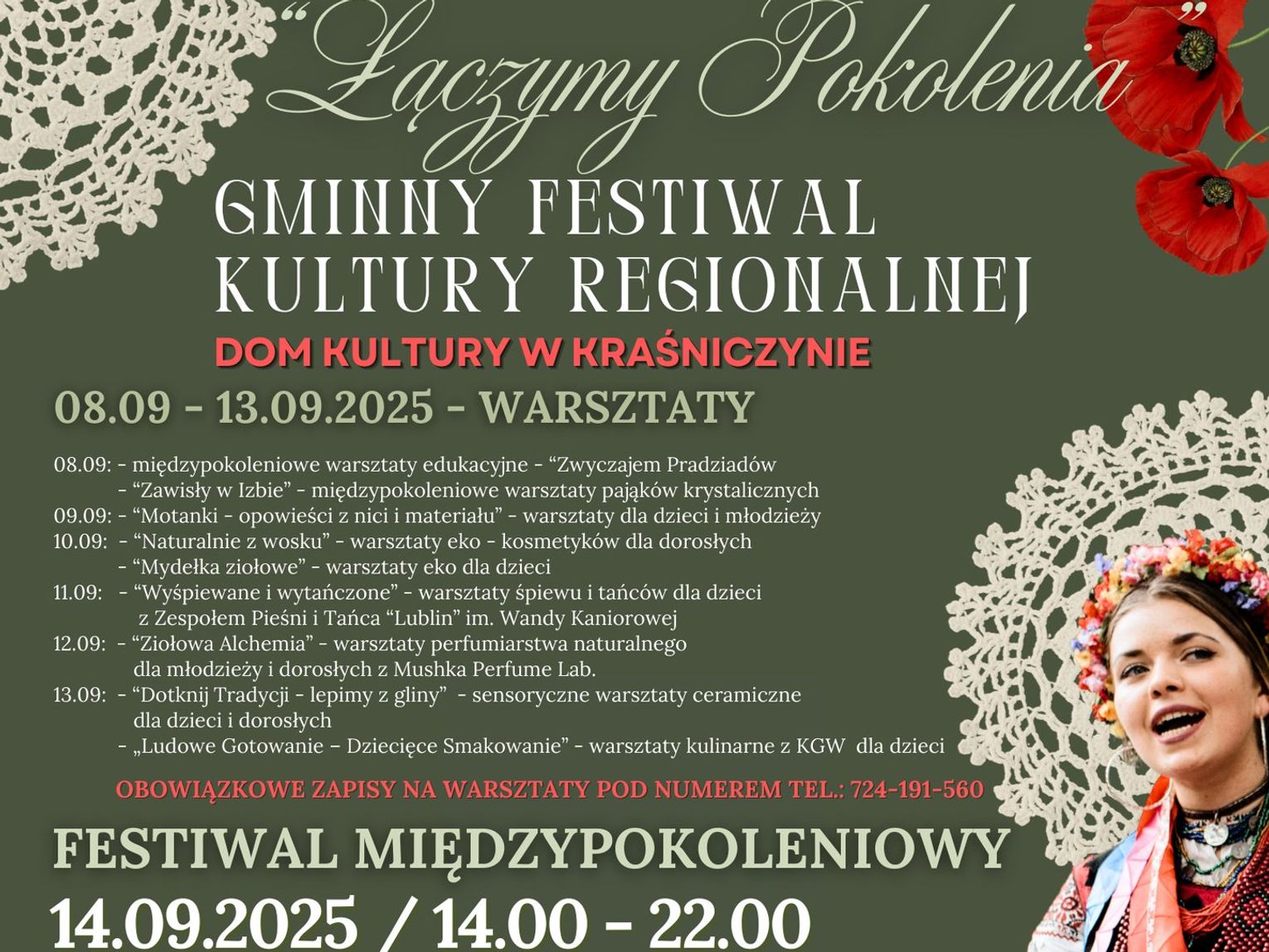 Druga część festiwalu odbędzie się 14 września w godz. 14:00-22:00 na placu przy Domu Kultury w Kraśniczynie (ul. Polna 2A). Program tego dnia jest bogaty w atrakcje dla wszystkich uczestników. Organizatorzy planują warsztaty malowania drewnianych zabawek, zabawy ludowe z animatorami, konkursy z nagrodami (m.in. quiz wiedzy o tradycji, konkurs na najładniejszy wianek), a także wystawy dzieł sztuki ludowej. Koła gospodyń wiejskich z terenu gminy Kraśniczyn przygotują tradycyjne potrawy, dając możliwość degustacji lokalnych przysmaków. Uczestnicy będą mogli także zobaczyć żywą zagrodę edukacyjną, gdzie odbędą się warsztaty oraz spotkania ze zwierzętami gospodarskimi.