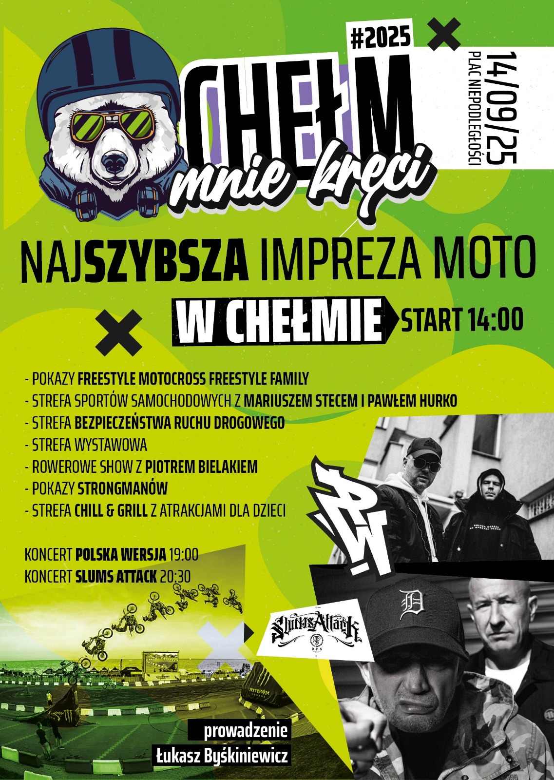 Start imprezy zaplanowano na godzinę 14:00. W programie znalazły się widowiskowe atrakcje, m.in.: pokazy Freestyle Motocross w wykonaniu Freestyle Family, strefa sportów samochodowych z Mariuszem Stecem i Pawłem Hurko, a także rowerowe show Piotra Bielaka. Nie zabraknie również pokazów strongmanów, strefy bezpieczeństwa ruchu drogowego oraz specjalnej strefy wystawowej. Dla rodzin przygotowano Chill & Grill z atrakcjami dla dzieci, dzięki czemu wydarzenie stanie się świetną propozycją na spędzenie wspólnego dnia.