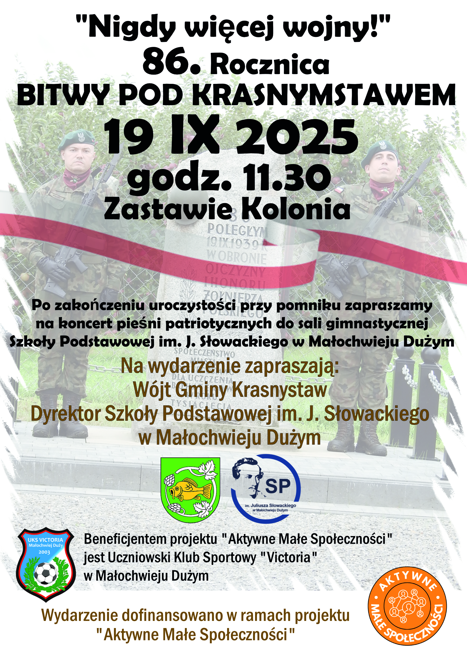 Organizatorami uroczystości są wójt gminy Krasnystaw Wojciech Kowalczyk oraz dyrektor Szkoły Podstawowej im. J. Słowackiego w Małochwieju Dużym Andrzej Jasionowski. Wydarzenie jest dofinansowane w ramach projektu "Aktywne Małe Społeczności", którego beneficjentem jest Uczniowski Klub Sportowy "Victoria" w Małochwieju Dużym.