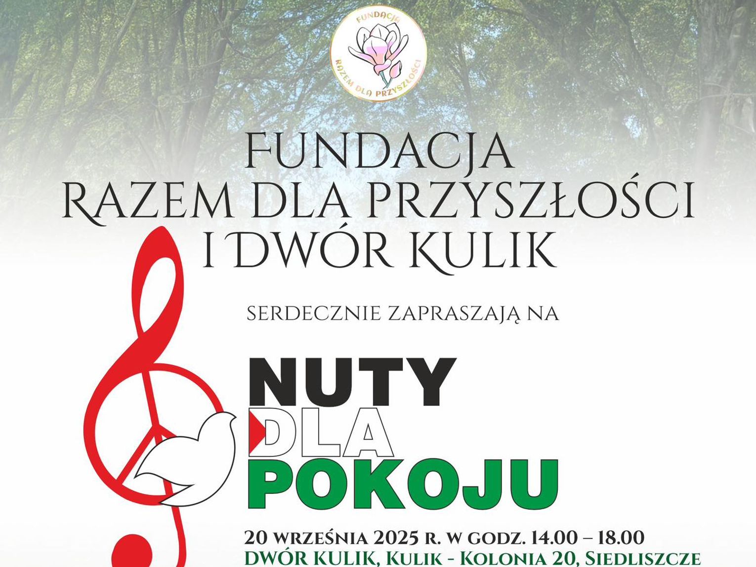 Wydarzenie odbędzie się w malowniczym otoczeniu zabytkowego parku Dworu Kulik w Siedliszczu i ma stać się platformą dla głosu sprzeciwu wobec wojny w Strefie Gazy i wyrazem wsparcia dla jej mieszkańców. Jak mówią organizatorzy z fundacji "Razem dla Przyszłości", prawo do życia jest wspólnym językiem całej ludzkości, a muzyka ma być jego najczystszym wyrazem.