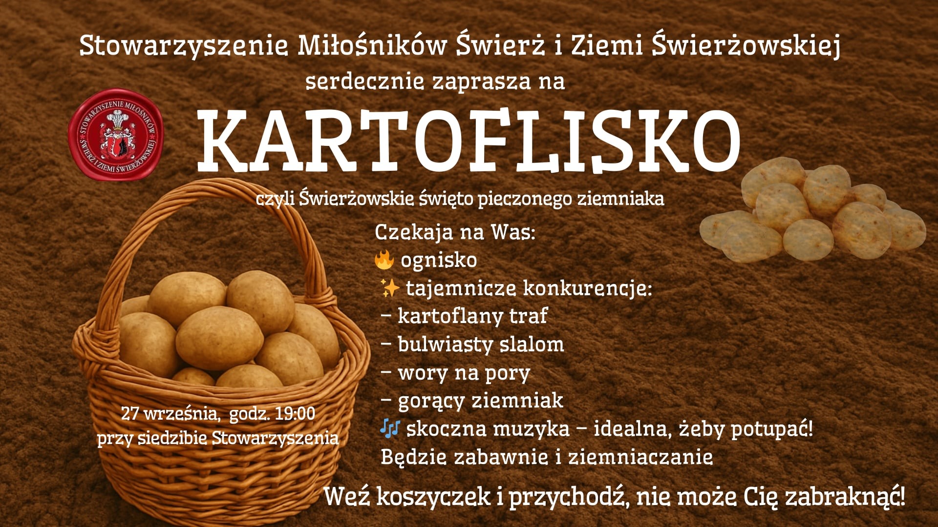 Na uczestników czeka sporo atrakcji, a wśród nich konkurencje pod tajemniczymi nazwami: kartoflaty traf, bulwiasty slalom, wory na pory i gorący ziemniach. Wszystko to przy akompaniamencie skocznej muzyki oraz z integracyjnym ogniskiem.