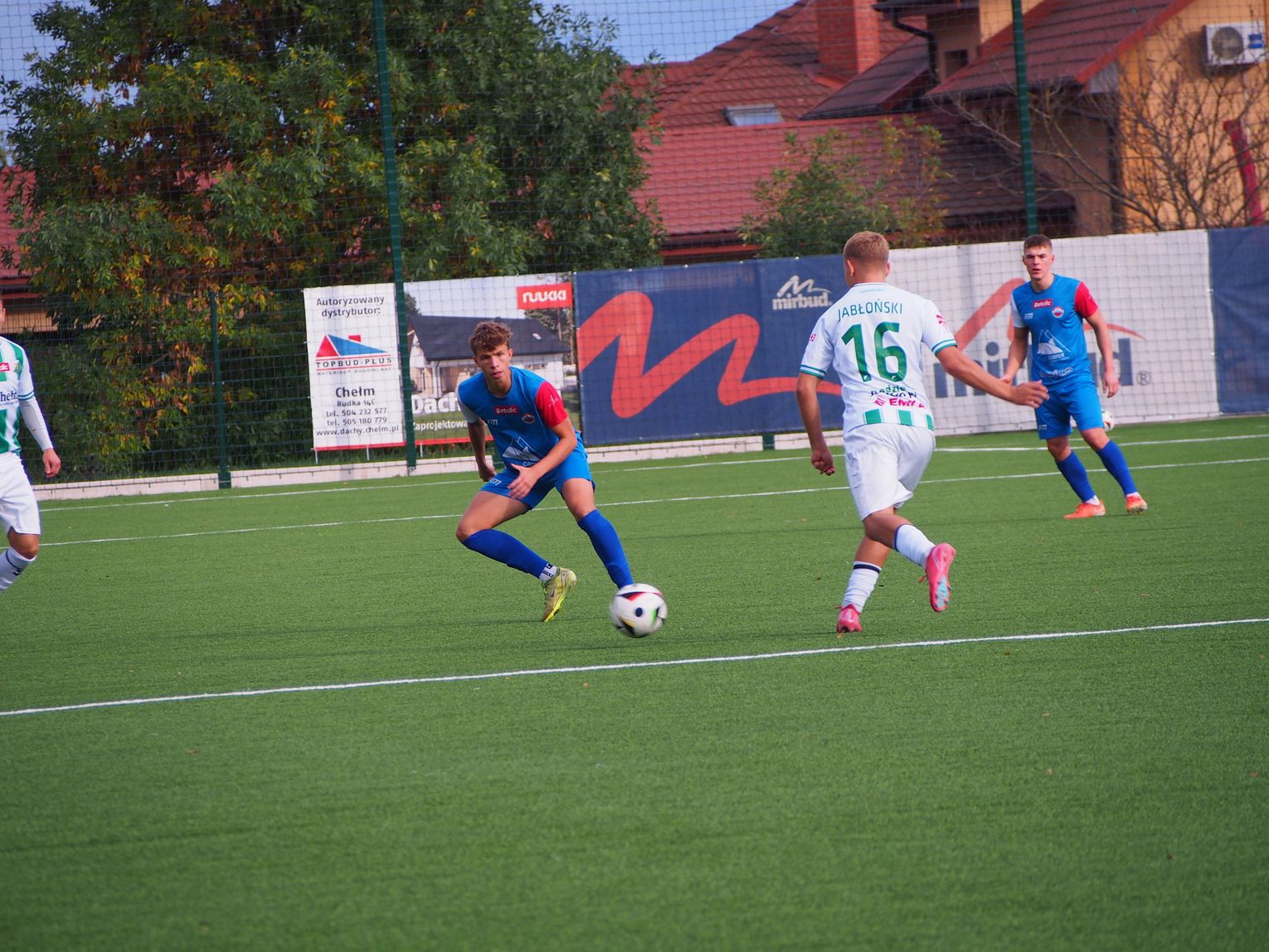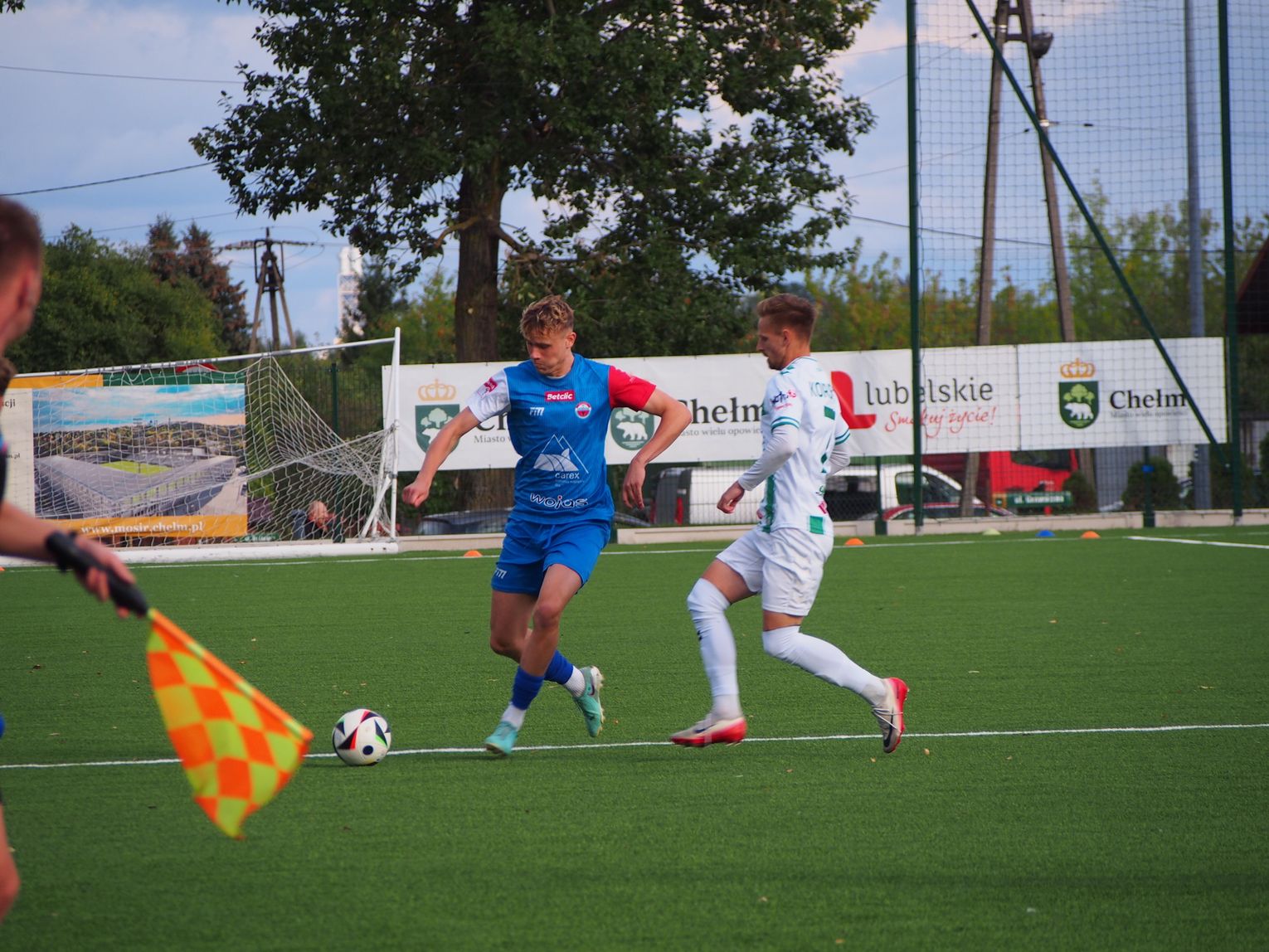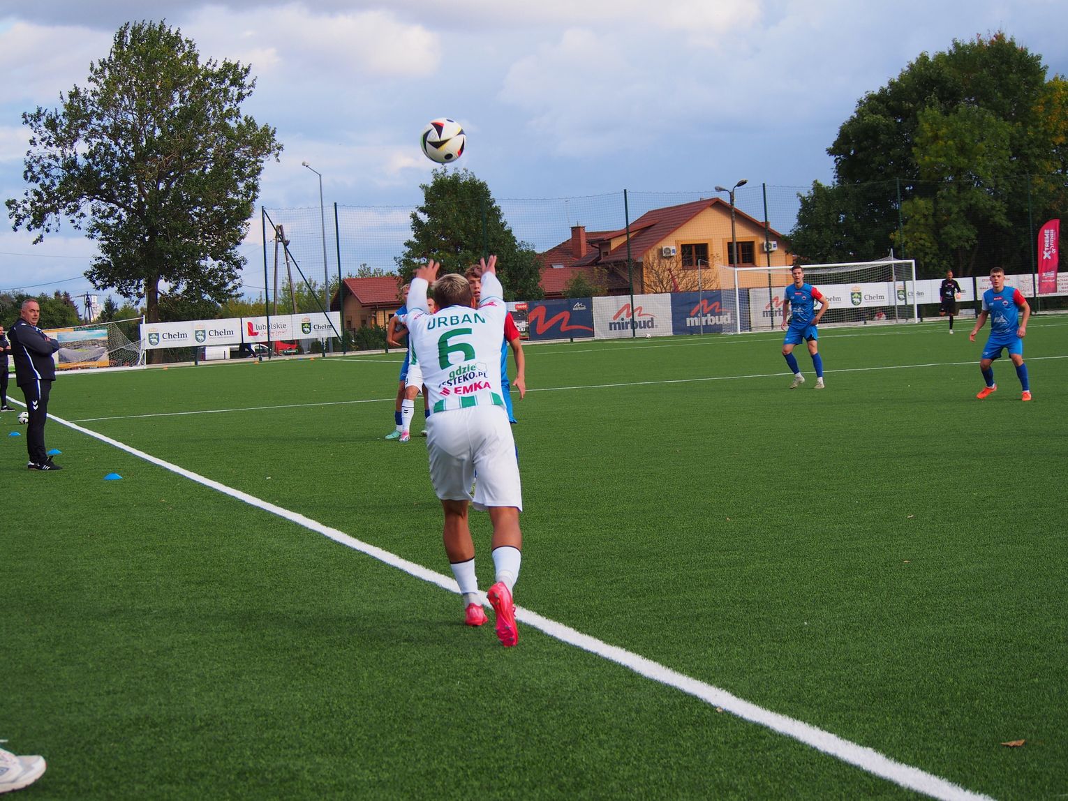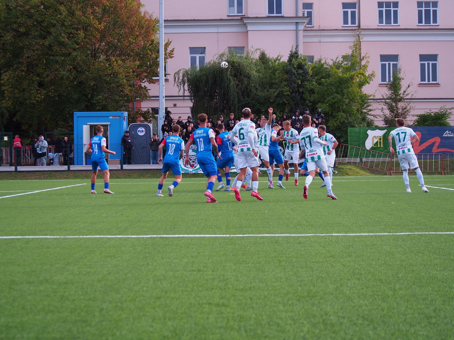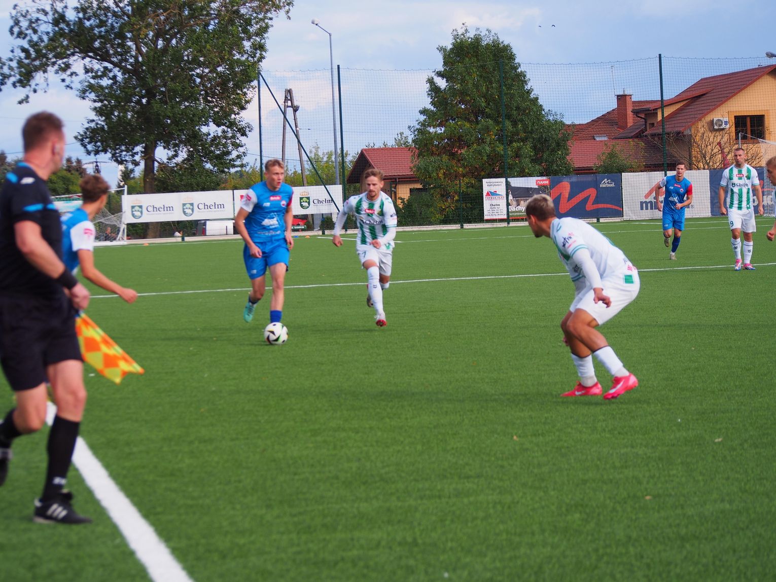 Mecz miał bardzo dynamiczny początek i gra toczyła się praktycznie na całym boisku. W 5. minucie doszło do nerwowej sytuacji, która „pachniała” karnym dla gospodarzy, jednak sędzia nie dopatrzył się faulu. Dwie minuty później walka pod polem bramkowym gości przyniosła oczekiwany skutek dla Chełmianki, kiedy piłkę za plecy Artsioma Hemalki posłał Krystian Derkacz, dając swojej drużynie prowadzenie. Ten gol widocznie podciął skrzydła zespołowi Sparty, ponieważ dał się on zepchnąć do obrony i szukał swoich okazji w kontratakach, kilka razy niemal docierając do bramki biało-zielonych. Tam jednak czekali na nich czujni defensorzy oraz skupiony Adam Wilk, którzy skutecznie powstrzymywali przyjezdnych od kontaktowego trafienia. Ostatnie minuty pierwszej połowy minęły praktycznie pod bramką Sparty, której sprzyjało szczęście, bo piłka omijała ich siatkę, a gospodarzom brakowało dokładności w strzałach. W końcówce goście mieli jeszcze szansę na wyrównanie, ale rzut wolny obronił goalkeeper Chełmianki.