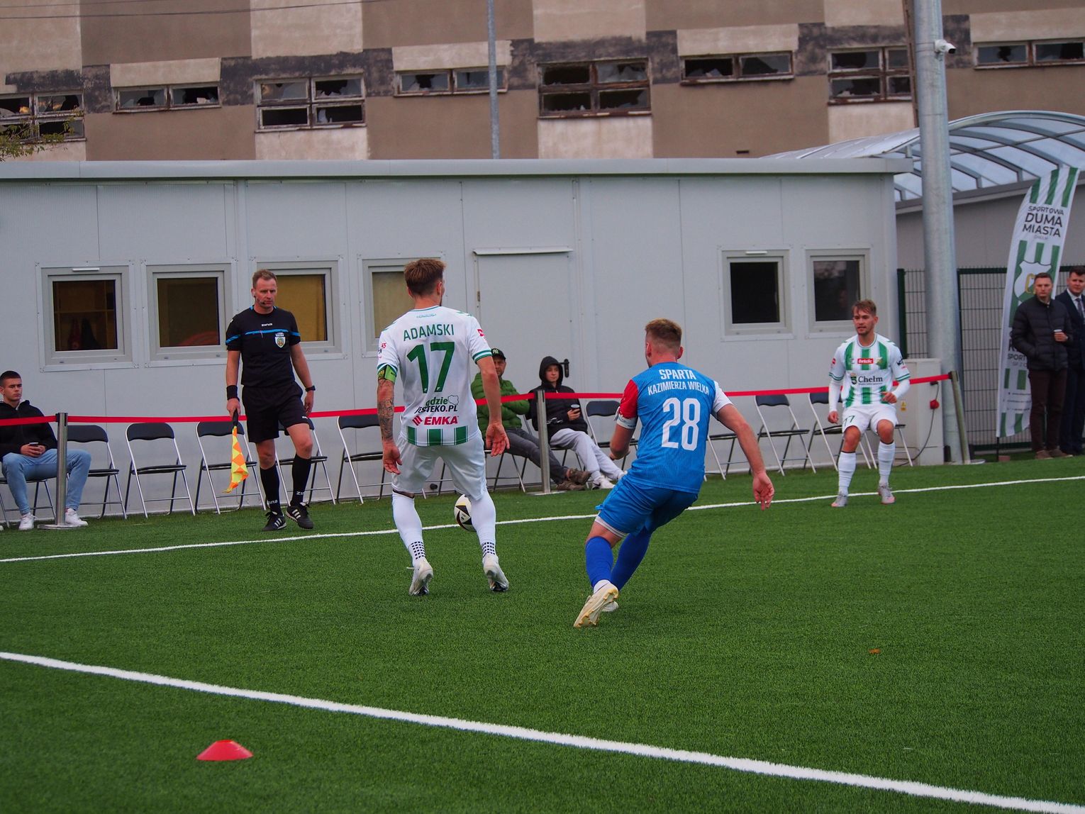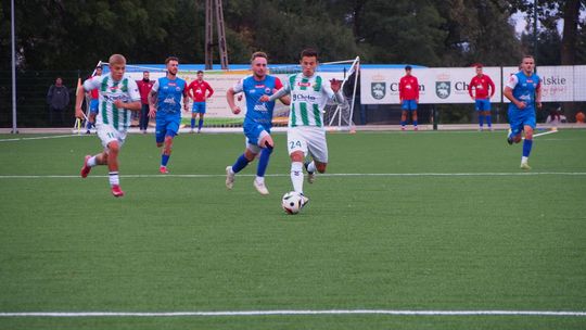 Pierwszy kwadrans drugiej połowy pokazał inne oblicze biało-zielonych, lecz niestety nie najlepsze. Zespół prowadzony przez Ireneusza Pietrzykowskiego „zapadł w letarg”, zaś Sparta Kazimierza Wielka na dobre rozgościła się na jego połowie. Biało-zieloni „obudzili się” po 60. minucie, a jako pierwsi szans na drugą bramkę szukali Bartłomiej Korbecki i Jakub Karbownik. Chełmianka szybko przejęła kontrolę i zaczęła wywierać presję na rywali, przenosząc tym samym ciężar gry na ich stronę murawy. W ostatnich dziesięciu minutach gospodarze mieli następne okazję na odskoczenie gościom, lecz brakło celności lub ich bramkarz pilnował lotu piłki. Niedługo przed ostatnim gwizdkiem swoich szans szukała jeszcze Sparta, ale skończyło się to żółtą kartą dla Aleksandra Zębali, który uderzył Adama Wilka podczas chaosu w naszym polu karnym.