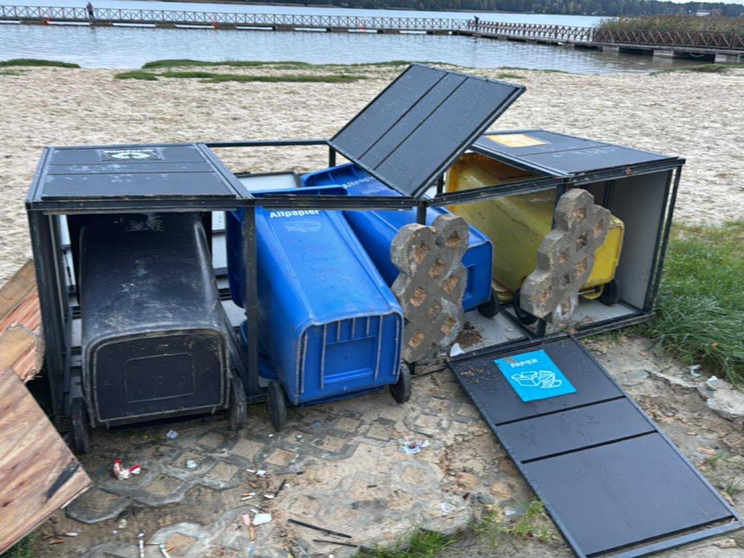 Jak wynika z komunikatu Urzędu Gminy Włodawa, wandalizm dotknął kosze na śmieci, które zostały wyrwane ze swoich mocowań i zniszczone. Szczególnie bulwersującym incydentem była próba kradzieży mniejszej z dwóch drewnianych rzeźb krokodyli. Rzeźba ta, stanowiąca charakterystyczny i chętnie fotografowany przez turystów element plaży, była solidnie przymocowana, co na szczęście udaremniło próbę jej wyniesienia.