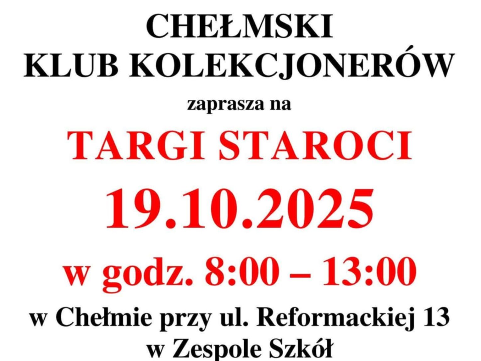 Targi Staroci odbędą się jak zwykle na terenie Zespołu Szkół Hotelarskich i Gastronomicznych przy ulicy Reformackiej 13 w Chełmie. Rozpoczną się o godzinie 8:00 i potrwają do godziny 13:00. Ten pięciogodzinny blok czasowy da uczestnikom możliwość dokładnego zapoznania się z ofertą, negocjowania cen oraz znalezienia poszukiwanych egzemplarzy do swoich kolekcji.