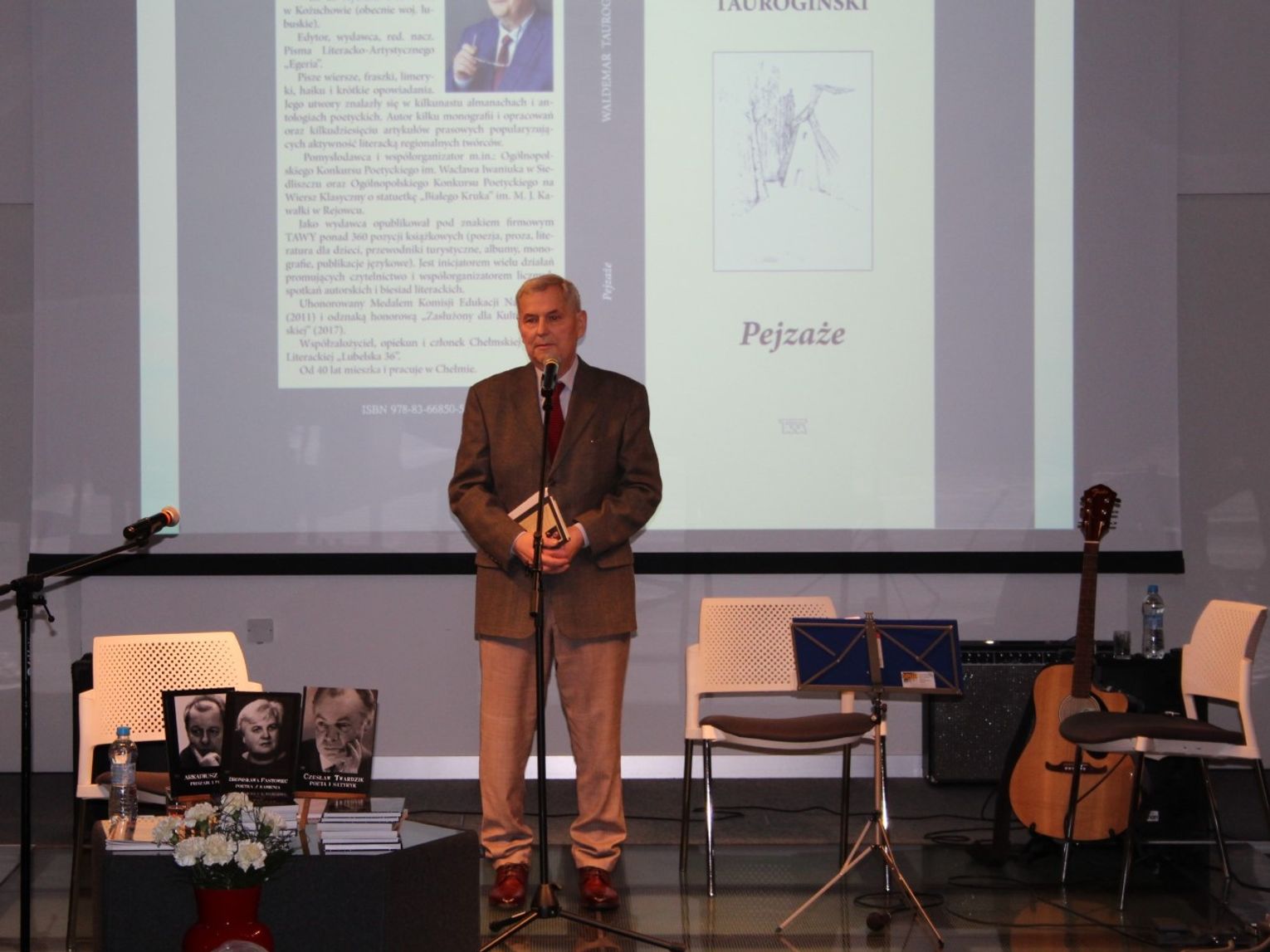 Waldemar Taurogiński od wielu lat działa na rzecz promocji literatury i sztuki w regionie. Prowadzi własną oficynę wydawniczą TAWA oraz pełni funkcję redaktora naczelnego Pisma Literacko-Artystycznego „Egeria”. Jest autorem wierszy, fraszek, limeryków, haiku i krótkich opowiadań, a jego utwory publikowane były w licznych almanachach i antologiach poetyckich.