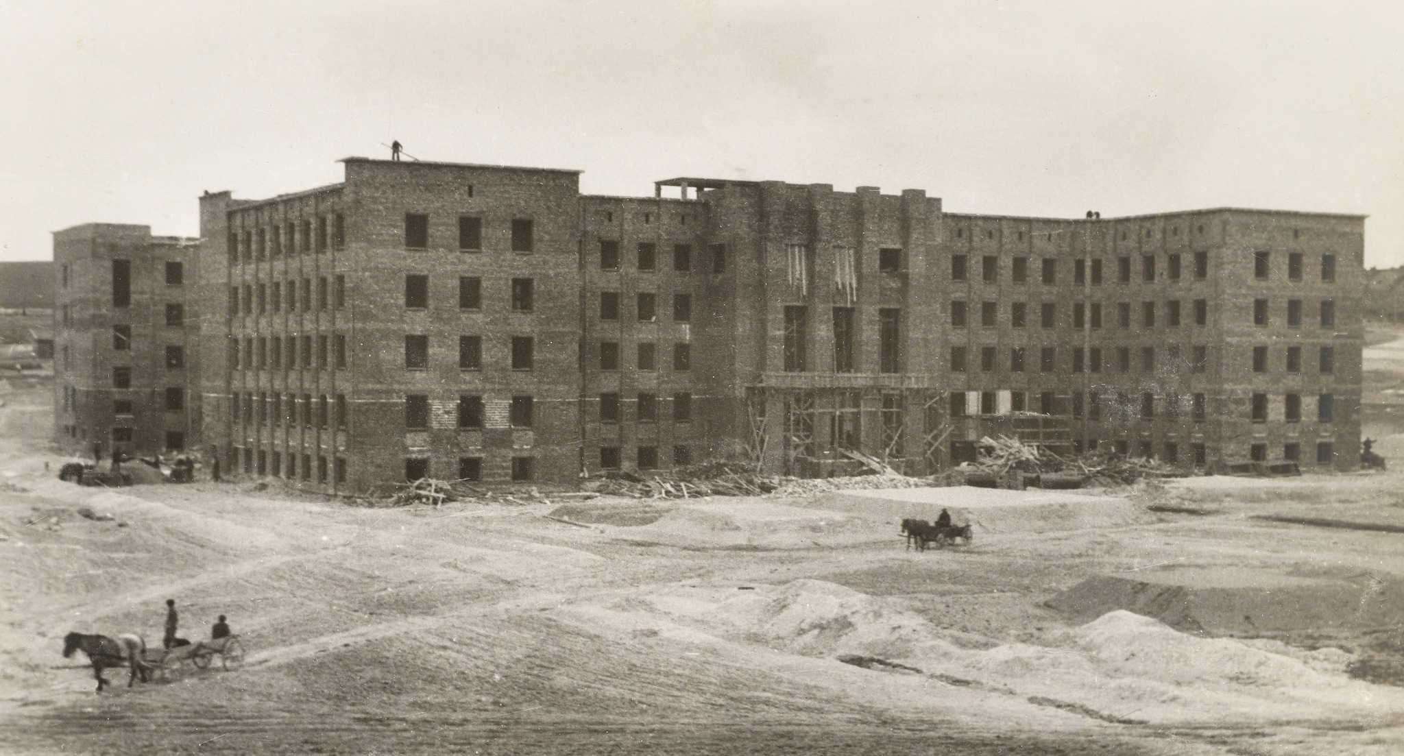 Budowa postępowała w imponującym tempie – w niespełna dwa lata ukończono 150 domów, co pochłonęło 22 miliony złotych. Jednak surowa zima 1929/1930 roku zatrzymała prace: pękające mury i trudne warunki atmosferyczne zmusiły wykonawców do wstrzymania robót. Swoje zrobiły też działania władz Radomia, które zabiegały o przeniesienie siedziby dyrekcji do swojego miasta. W efekcie inwestycję w Chełmie zamrożono na kilka lat, a budowę wznowiono dopiero w 1938 roku – już w cieniu nadchodzącej wojny.
