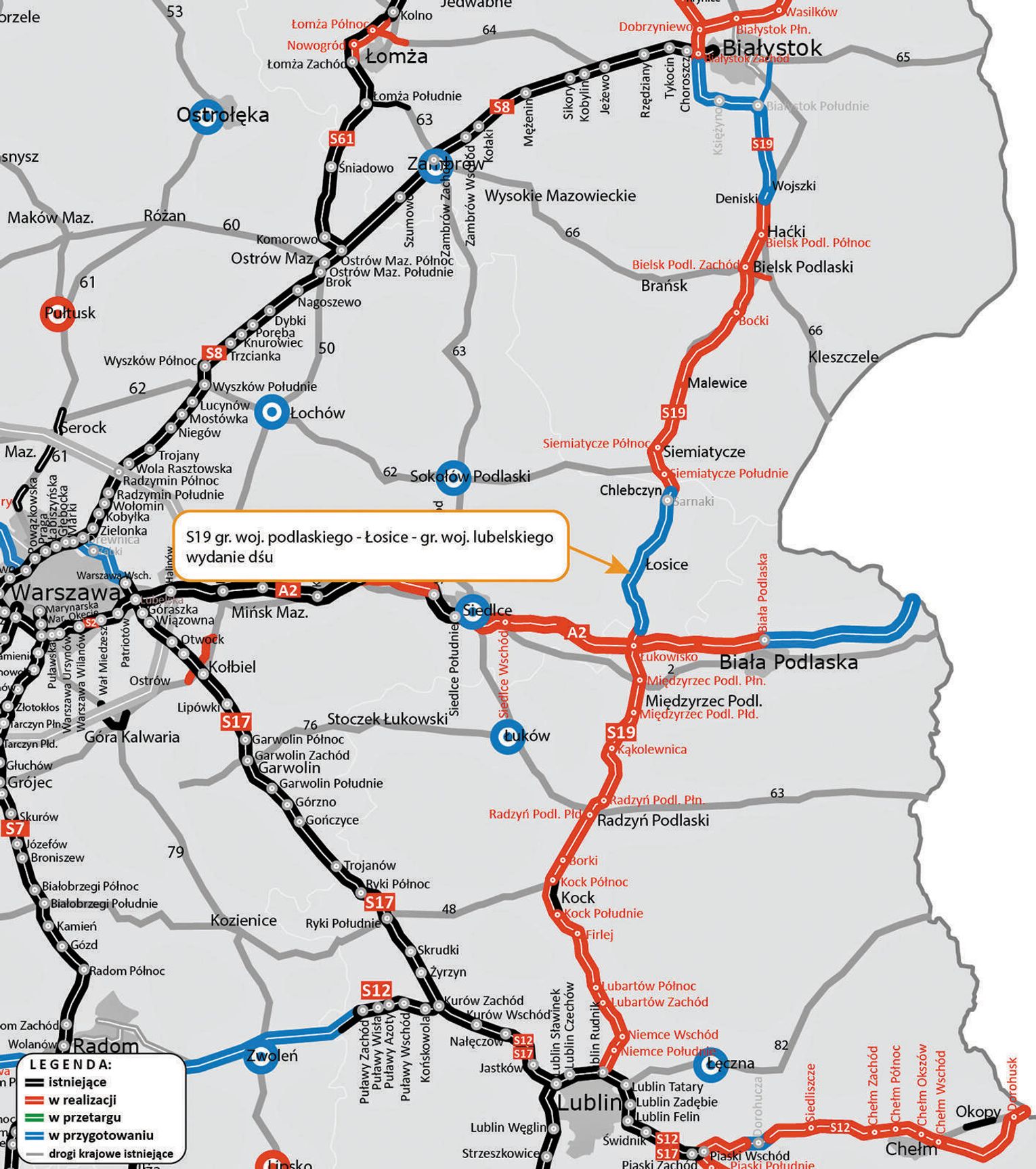 23 października wojewoda lubelski wydał obwieszczenie dotyczące wszczęcia postępowania administracyjnego dotyczącego wydania decyzji o zezwoleniu na realizację inwestycji drogowej: „Budowa drogi ekspresowej S19 Białystok - Lubartów, odcinek Międzyrzec Podlaski (koniec obwodnicy) - Kock (początek obwodnicy), Część nr II: Radzyń Podlaski - Kock (początek obwodnicy), długości 18,136 km”. Inwestycja dotyczy odcinka S19 w powiecie radzyńskim i lubartowskim, w gminach: Radzyń Podlaski - Miasto, Radzyń Podlaski, Borki i Kock.
