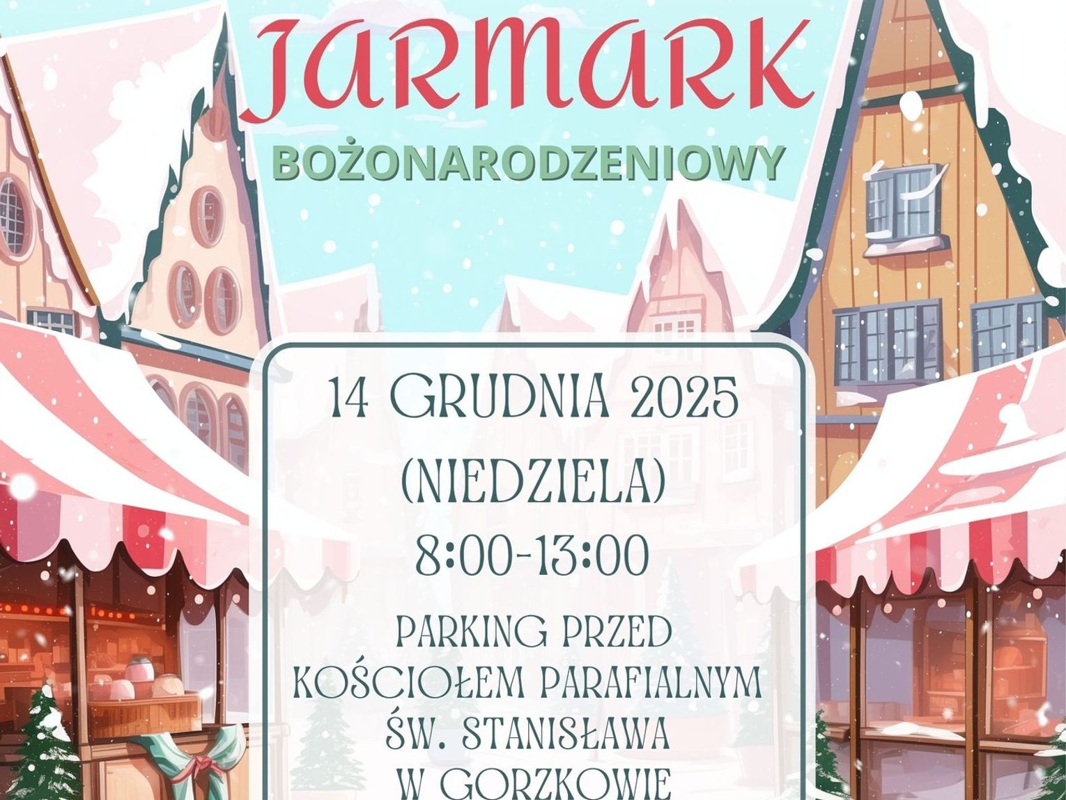Głównym punktem świątecznej inicjatywy będzie parking przed kościołem parafialnym pw. św. Stanisława w Gorzkowie, który na kilka godzin zamieni się w tętniące życiem centrum handlu i lokalnej kultury. Jarmark potrwa od godziny 8:00 do 13:00.