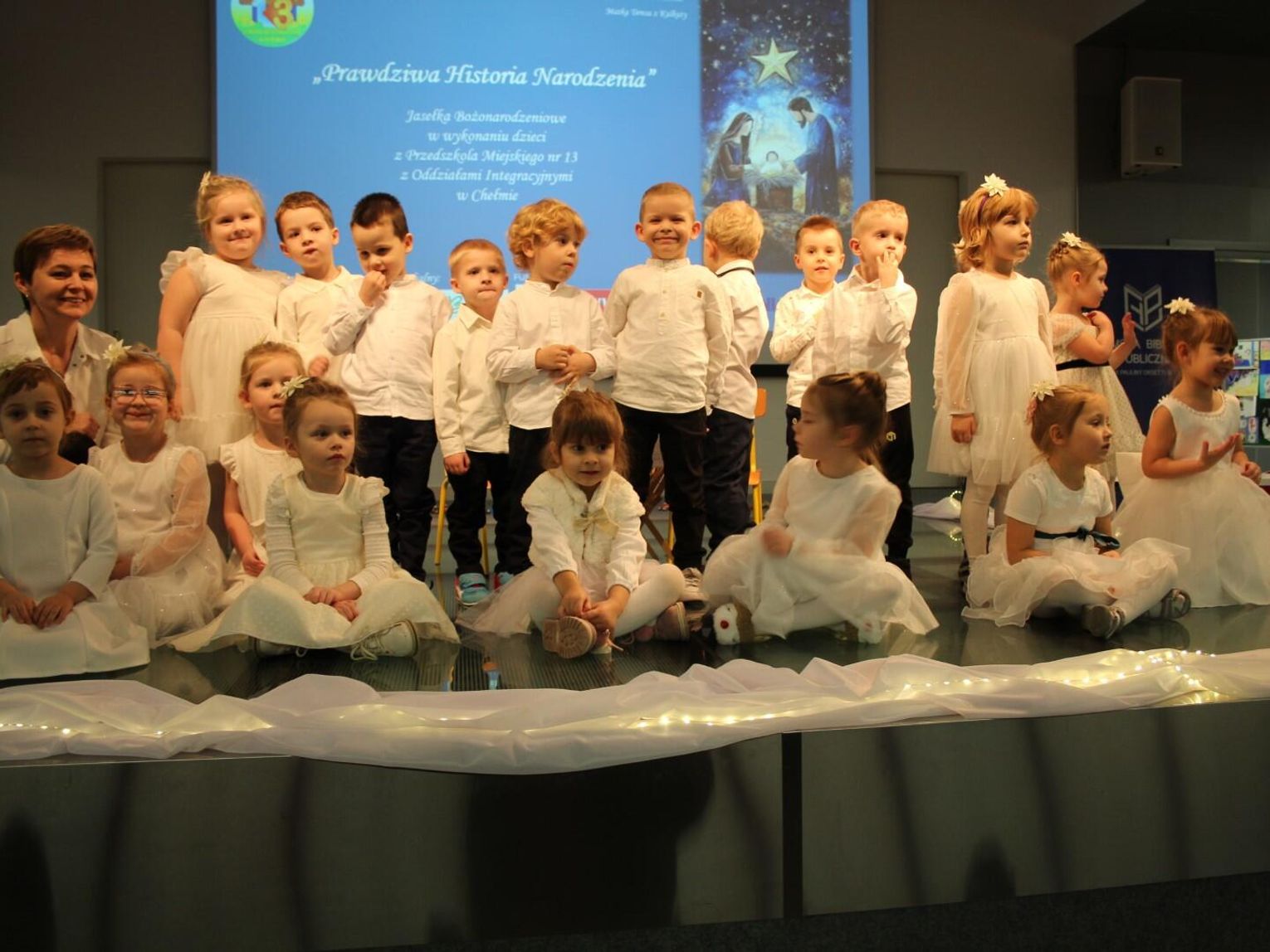 Tegoroczne jasełka miały formę montażu słowno-muzycznego pt. „Prawdziwa Historia Narodzenia”. Na scenie wystąpiły dzieci sześcioletnie z grup Tygryski i Słoneczka, które zaprezentowały bożonarodzeniową opowieść widzianą oczami najmłodszych. W program artystyczny włączyli się również wychowankowie młodszych grup: Motylki, Pszczółki, Wiewiórki i Zajączki, nadając przedstawieniu jeszcze bardziej rodzinny i wspólnotowy charakter.