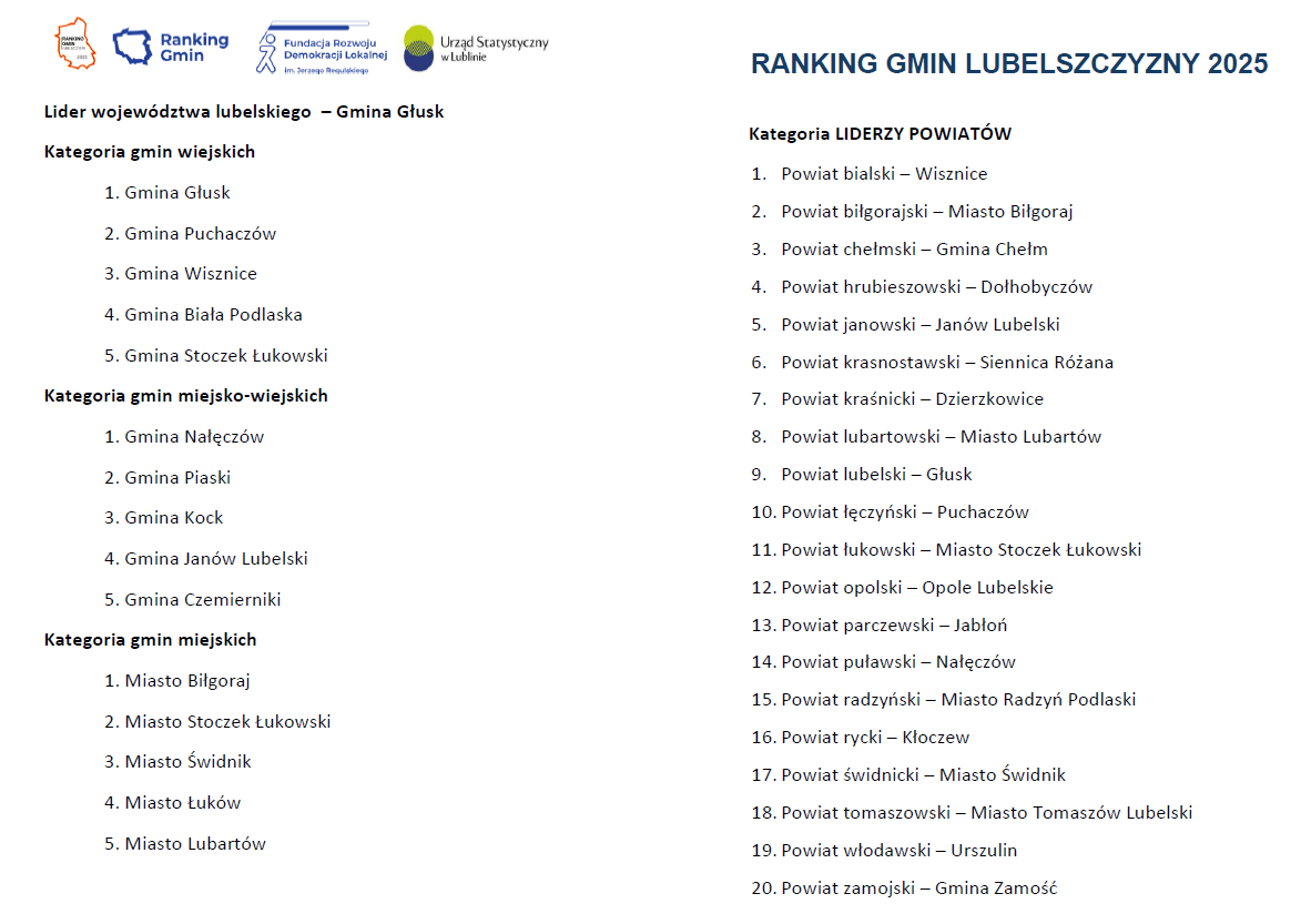 ![Region. Poznaliśmy liderów samorządów. Wyniki Rankingu Gmin Lubelszczyzny 2025 [GALERIA ZDJĘĆ] Region. Poznaliśmy liderów samorządów. Wyniki Rankingu Gmin Lubelszczyzny 2025 [GALERIA ZDJĘĆ]](https://static2.supertydzien.pl/data/media/2026/01/16/sm-16x9-region-poznalismy-liderow-samorzadow-wyniki-rankingu-gmin-lubelszczyzny-2025-galeria-zdjec-1768566178-0.jpg)