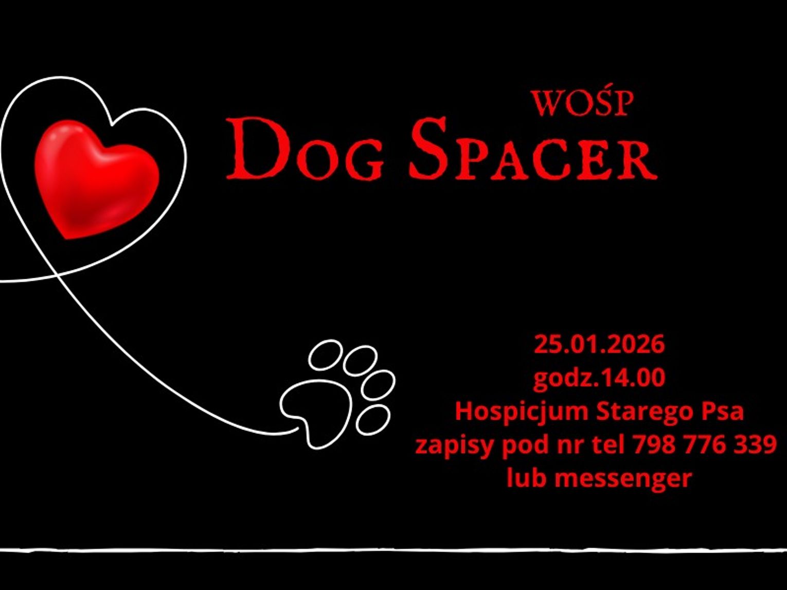 – Ten spacer ma jeden wspólny cel: DOBRO. Dobro, które niesiemy razem krok po kroku, łapka za nogą – możemy przeczytać w informacji wydarzenia.