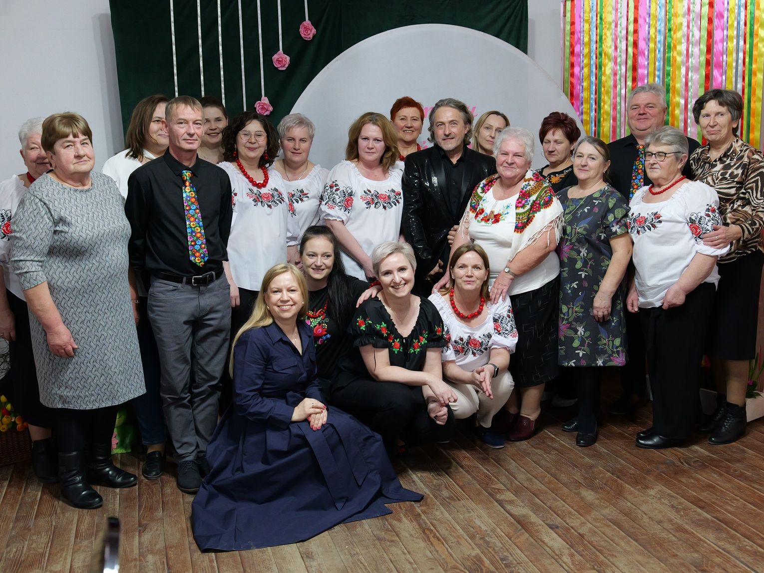 Po chwili zadumy przyszedł czas na część artystyczną. Sceną i sercami publiczności błyskawicznie zawładnął zespół dzieci i młodzieży ze Stawek, który zaprezentował się w barwnym i pełnym energii repertuarze ludowym. Nie zabrakło również tradycyjnego akcentu ze strony panów. Wójt gminy Włodawa, Dariusz Semeniuk, w asyście innych obecnych na sali mężczyzn, złożył mieszkankom najserdeczniejsze życzenia. Każdą z pań obdarowano kolorowymi tulipanami, stanowiącymi uniwersalny symbol nadchodzącej wiosny oraz wdzięczności.