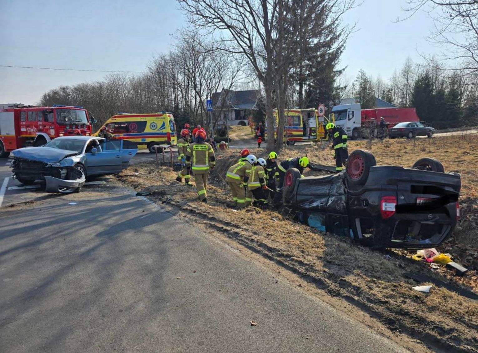 Na miejscu działali zawodowi strażacy z KP PSP we Włodawie oraz ochotnicy z Wyryk i Zahajek. Zabezpieczyli miejsce zdarzenia i uszkodzone auta.