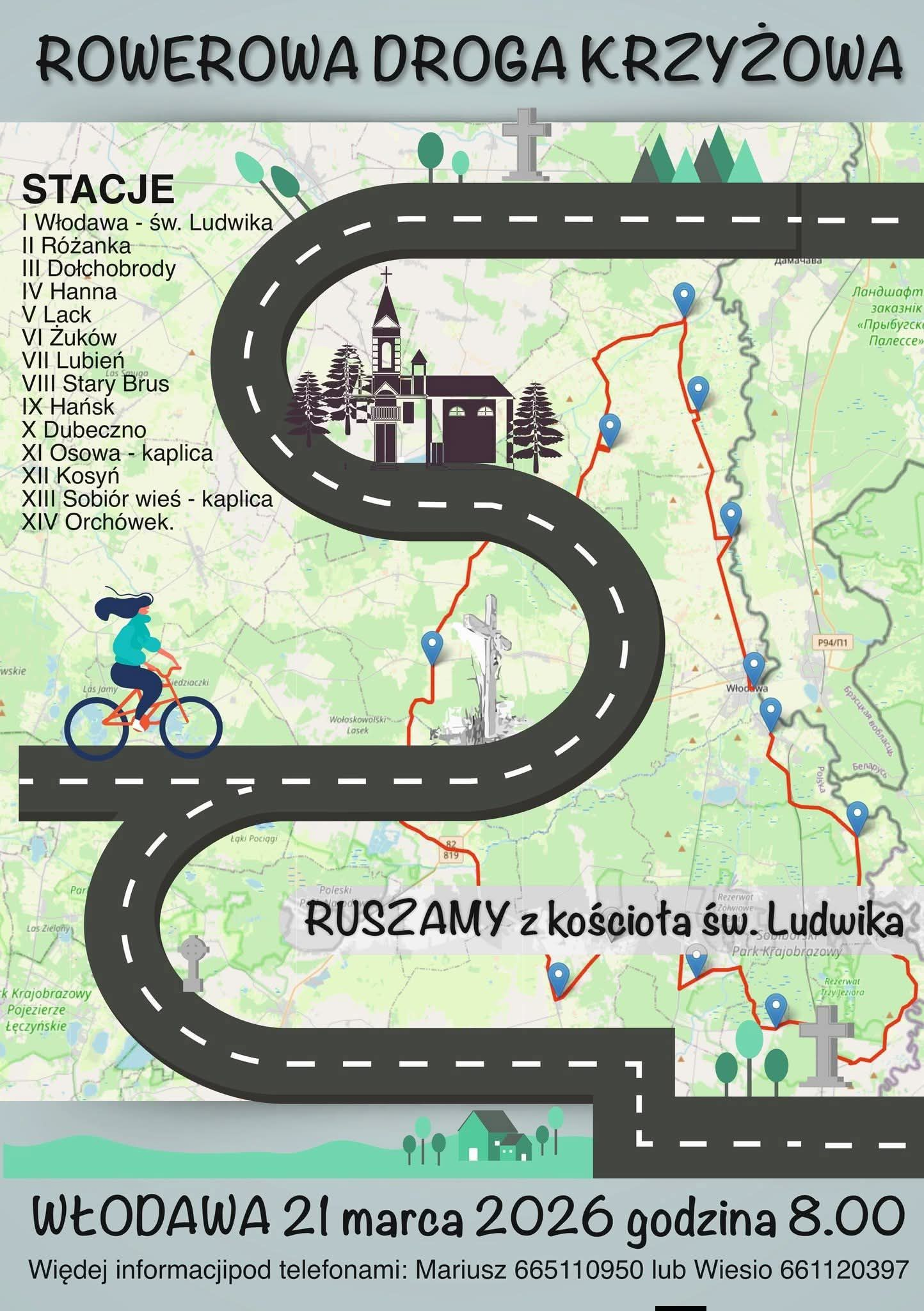 – Szykuje się bardzo fajna inicjatywa, czyli Rowerowa Droga Krzyżowa po powiecie włodawskim. To łącznie 123 kilometry i czternaście stacji w kościołach i kaplicach na trasie. Nie musisz przejechać całości, możesz pokonać tylko część trasy lub po prostu dołączyć się do nas w trakcie – apeluje wicestarosta w mediach społecznościowych.