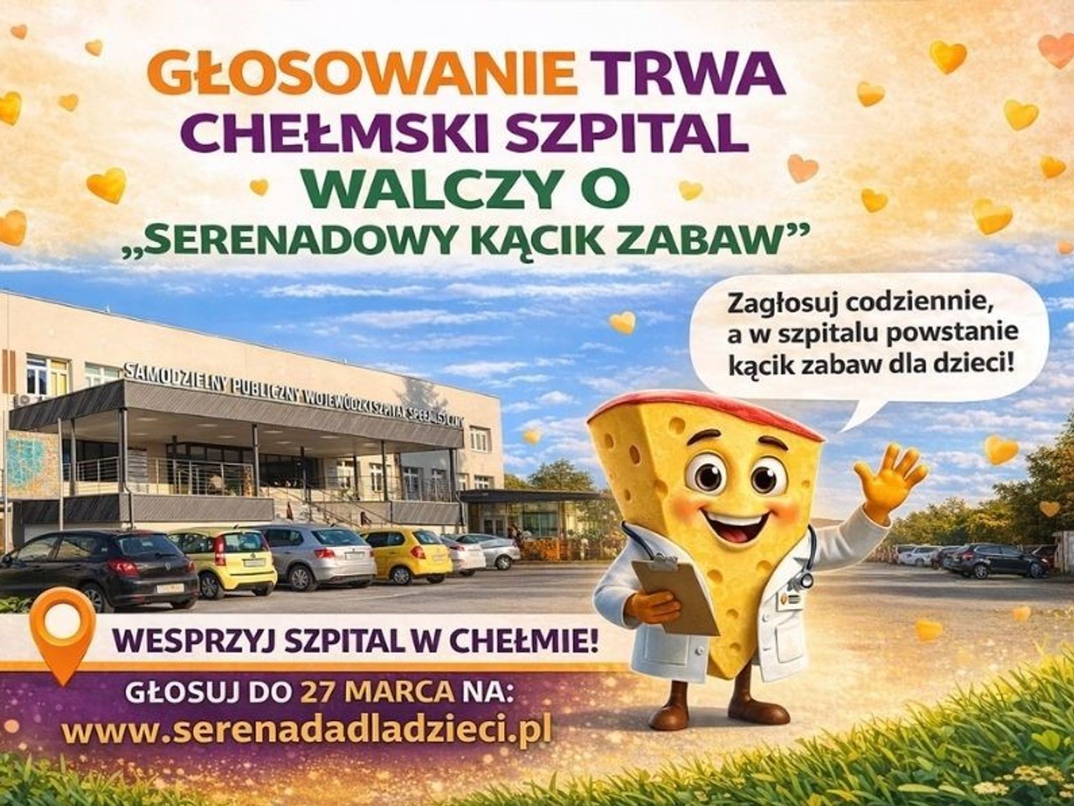 Od 13 do 27 marca trwa głosowanie, w którym wyłonionych zostanie zaledwie pięć zwycięskich placówek w całej Polsce – po jednej z każdego regionu. Stawką jest stworzenie w szpitalu specjalnego „Serenadowego kącika zabaw”, zaprojektowanego z myślą o małych pacjentach szpitala.