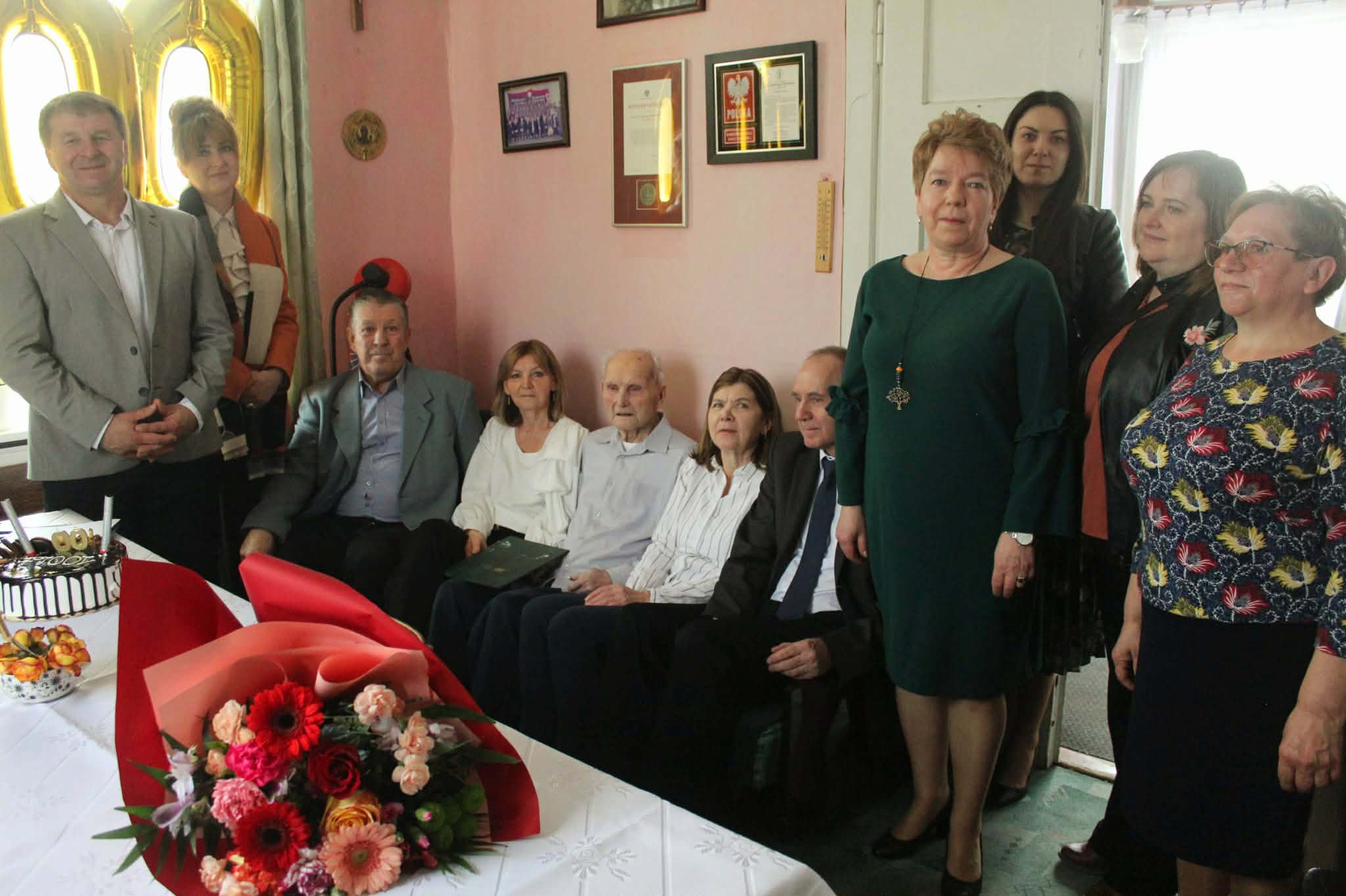 Uroczystość, którą mogą przeżywać jedynie nieliczni, pan Eugeniusz Mariański świętował w gronie najbliższej rodziny i przedstawicieli lokalnego samorządu. We wtorek (24 marca) jego dom odwiedził między innymi wójt Dariusz Stocki, pracowniczka urzędu gminy Angelika Kędziora oraz delegacja chełmskiej placówki Zakładu Usług Społecznych w Chełmie. Jubilat otrzymał kwiaty i słodki tort, a podniosłości chwili dodało odczytanie listu gratulacyjnego od Prezesa Rady Ministrów oraz lokalnych władz samorządowych.