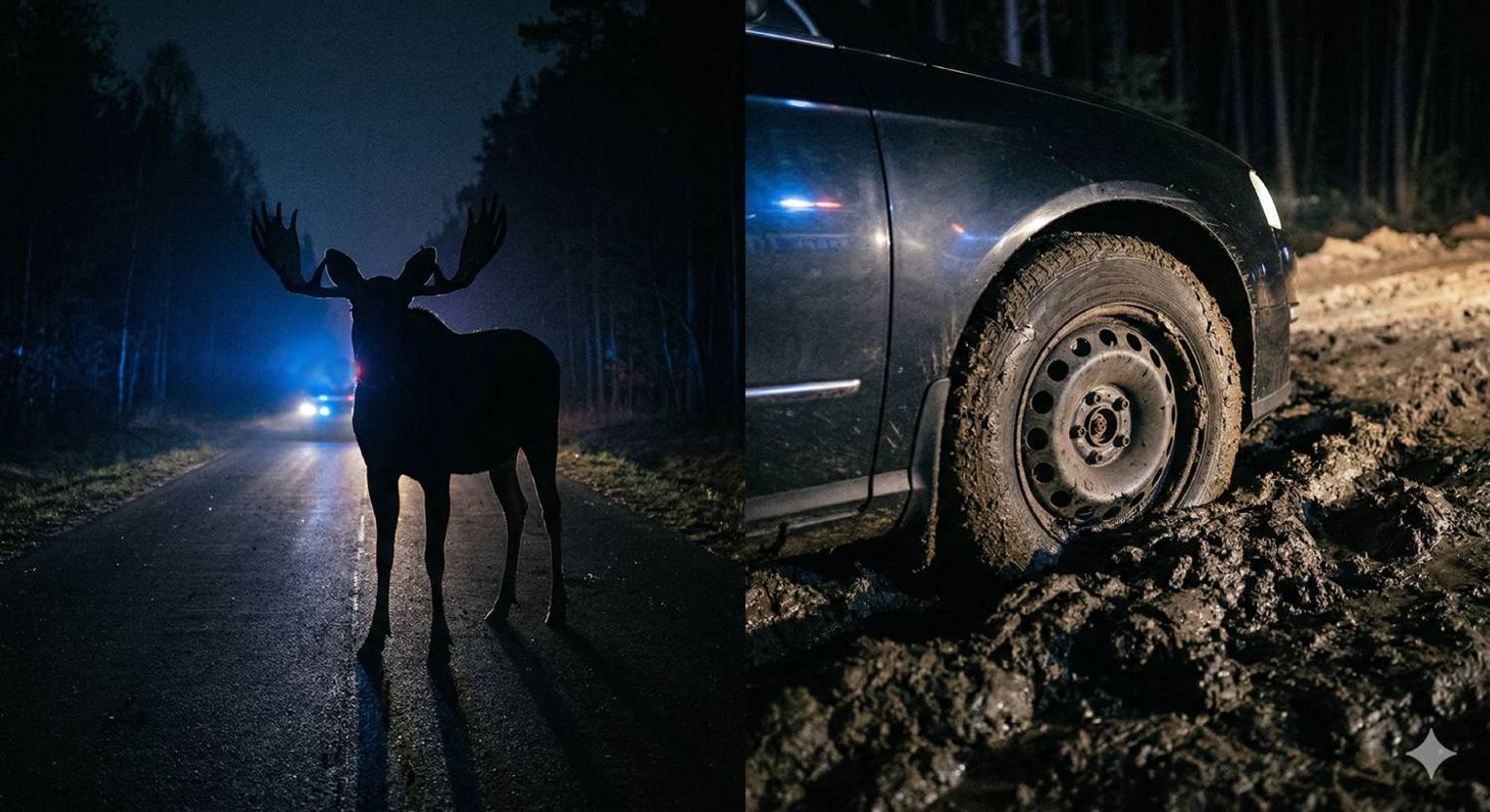 Policja apeluje o zachowanie szczególnej ostrożności, zwłaszcza po zmroku na terenach zalesionych oraz w miejscach, gdzie trwają roboty drogowe i grunt jest niepewny.