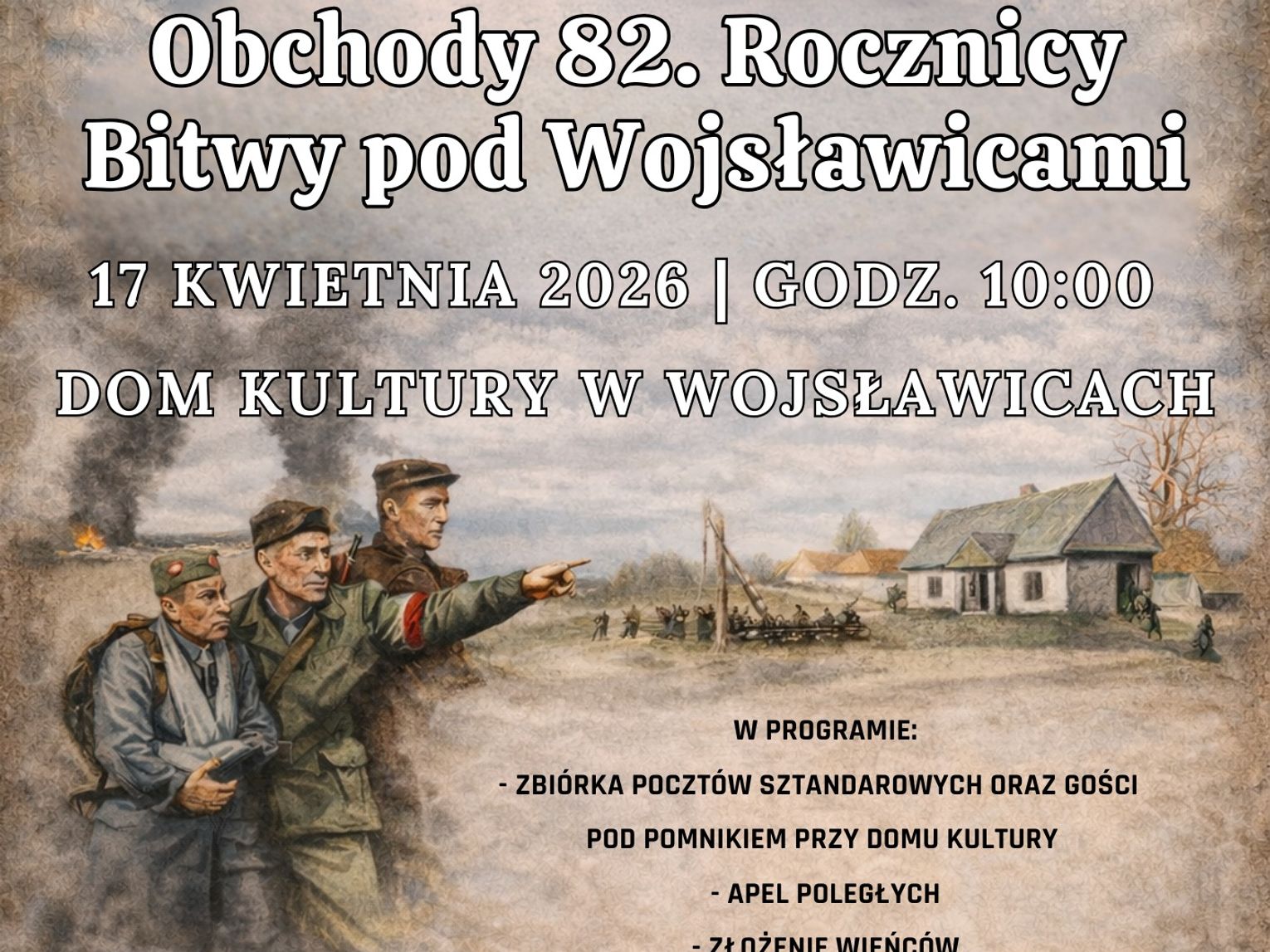 – Przed nami obchody 82. rocznicy bitwy pod Wojsławicami. W program uroczystości, zbiórka pocztów sztandarowych oraz gości pod pomnikiem przy Domu Kultury, apel poległych, złożenie wieńców, a następnie w sali widowiskowej domu kultury wystąpienia okolicznościowe oraz część artystyczna w wykonaniu młodzieży szkolnej. Serdecznie zapraszam, uczcijmy pamięć bohaterów Wojsławic – mówi Bartłomiej Szajner, wójt gminy Wojsławice.