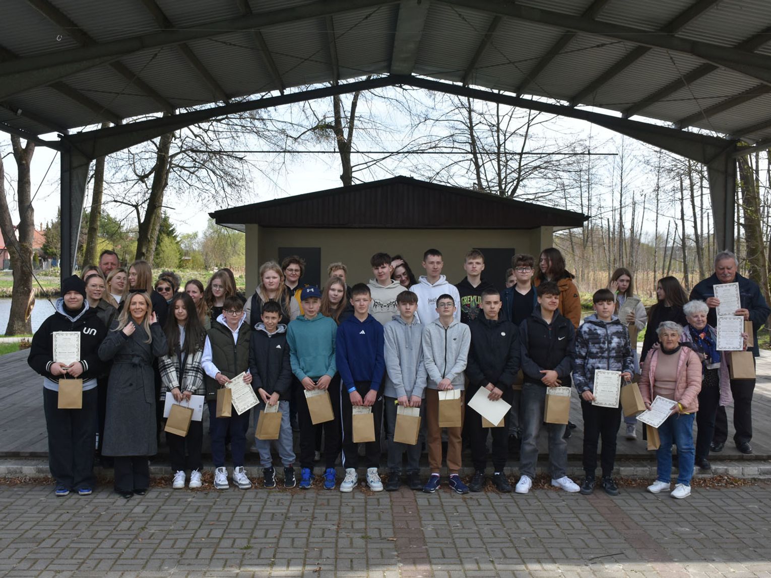 Na terenie parku wokół szkoły odbyła się gra terenowa „Most pamięci. Wspólna wyprawa przez historię”. W wydarzeniu wzięli udział nie tylko uczniowie, lecz także ich rodzice oraz słuchacze Uniwersytetu Trzeciego Wieku z Siennicy Różanej. Uczestnicy, podzieleni na zespoły, przemierzali kolejne punkty zadaniowe, poznając fakty, miejsca i postacie związane z wojennymi losami mieszkańców regionu. Zadania wymagały nie tylko wiedzy, ale także współpracy i zaangażowania. Gra stała się przestrzenią spotkania różnych pokoleń i wspólnego odkrywania historii „małej ojczyzny”.