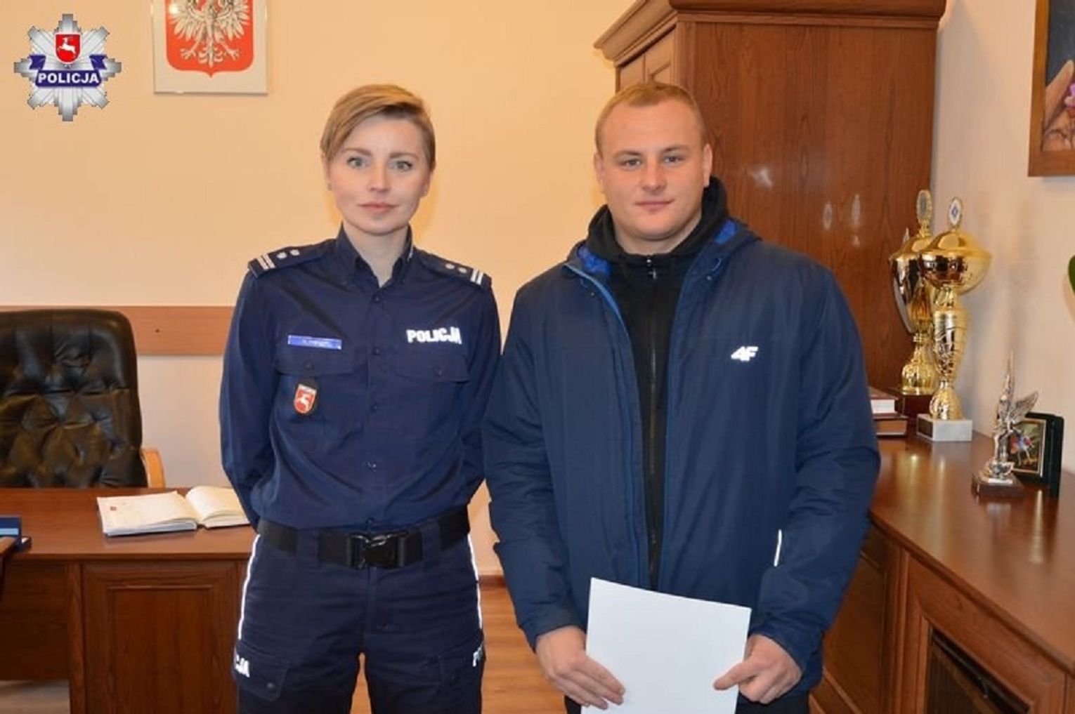 We wtorek pan Krystian odebrał z rąk Komendanta Powiatowego Policji w Krasnymstawie mł. insp. Wioletty Pawluk gratulacje i podziękowania za wzorową postawę. O losie 27-latka z gminy Nielisz zdecyduje natomiast sąd. Grozi mu pozbawienie wolności, zakaz prowadzenia pojazdów, grzywna oraz wysoka nawiązka na fundusz pokrzywdzonym w wypadkach.
