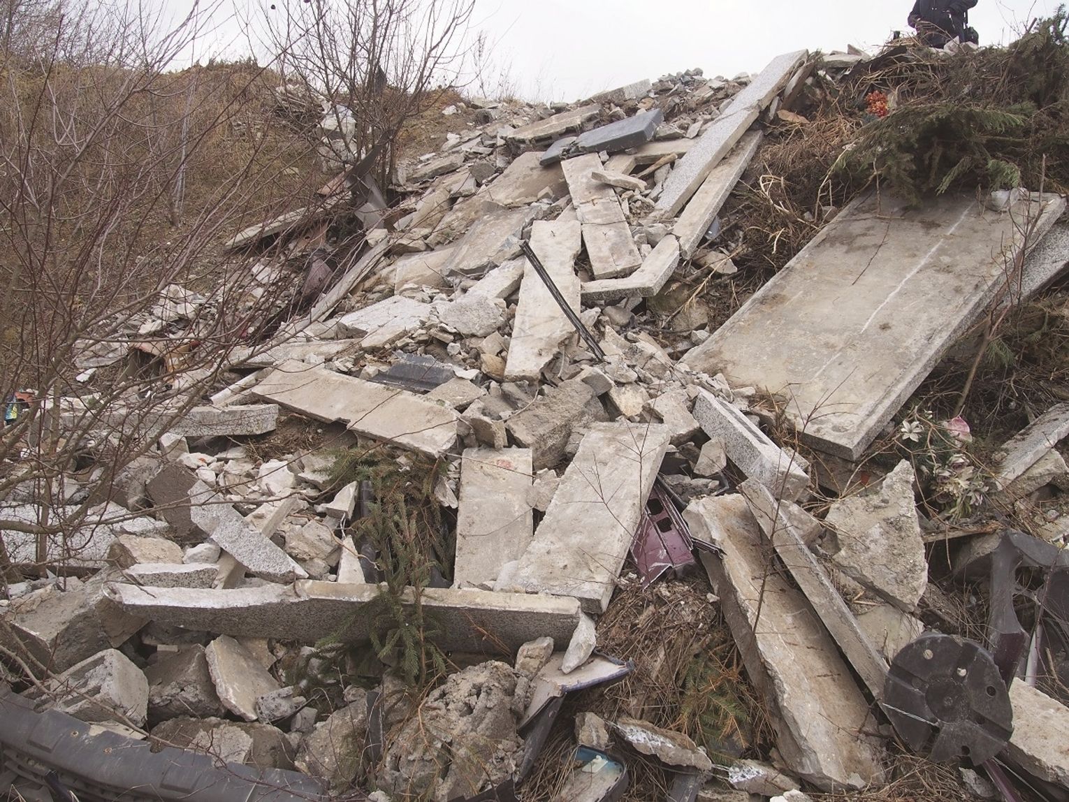 Na piaskowni w Kamieniu porzucono nie tylko gruz z pomników. Znaleźć tam można również stare opony, lodówki, gałęzie z wycinki drzew, kupy starych, pustych kolb kukurydzy i inne problematyczne odpady.