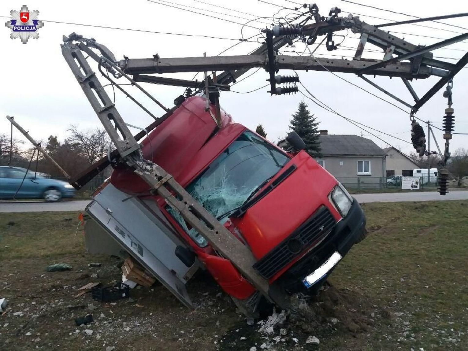 W środę po południu dyżurny komendy otrzymał zgłoszenie o zdarzeniu drogowym, do którego doszło w miejscowości Poczekajka. Policjanci ustalili, że kierujący samochodem dostawczym marki Volkswagen 23-letni obywatel Ukrainy stracił panowanie nad pojazdem, w wyniku czego zjechał z drogi i uderzył w słup trakcji elektrycznej. Siła uderzenia była tak duża, że słup został złamany. Na szczęście w zdarzeniu tym 23-latek nie odniósł poważniejszych obrażeń.
